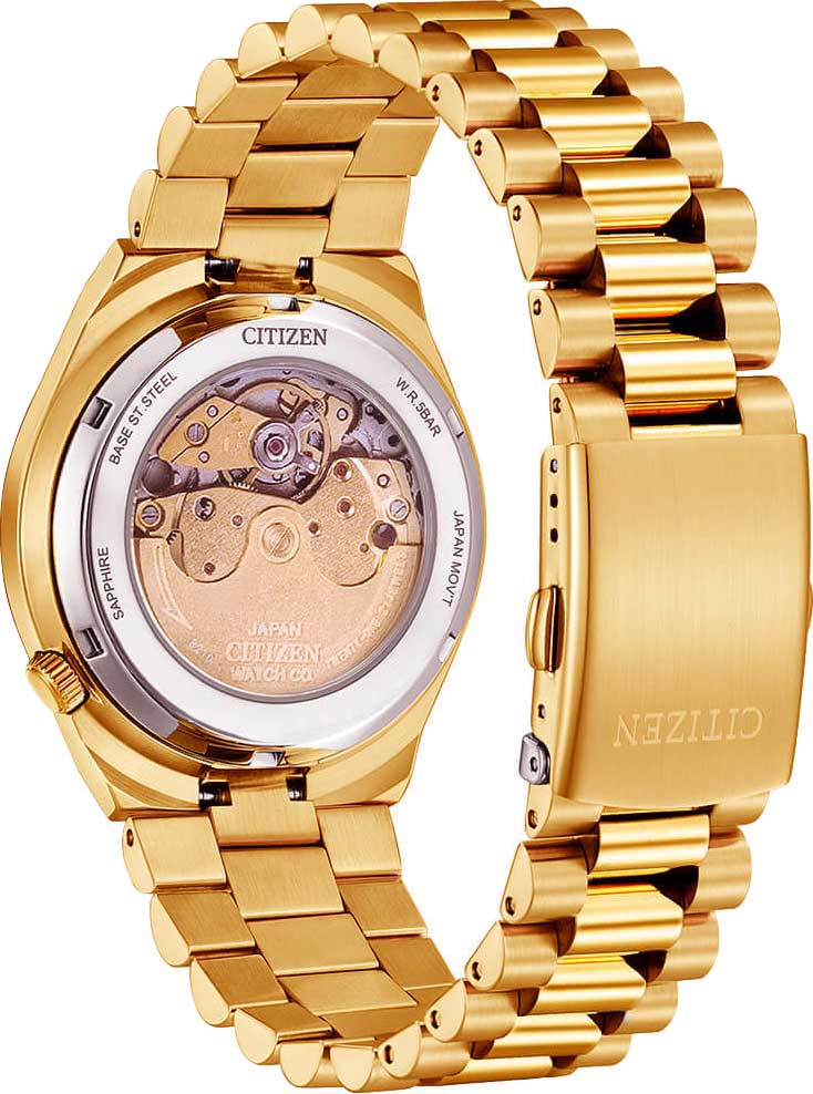 Мужские часы Citizen Tsuyosa NJ0153-82X - идеальное сочетание классического и современного дизайна. Корпус из нержавеющей стали с IP-покрытиемIP-покрытиеМетод ионного напыления. Демонстрирует повышенную устойчивость к истиранию, окислению и химическим веществам. Под воздействием высокого давления и температуры около 1500°C молекулы металла надёжно соединяются с частицами корпуса часов. цвета розового золота, диаметром 40 мм идеально сбалансирован. Сапфировое стеклоСапфировое стеклоПрочный и надёжный материал из кристалла сапфира синтетического происхождения, характеризующийся особой твёрдостью и устойчивостью к царапинам и повреждениям. с антибликовым покрытиемАнтибликовое покрытиеСлой оксида металла в 0,13-0,3 микрон, благодаря которому стекло часов не бликует и не отражает свет. Антибликовое покрытие уменьшает отражение света в 10 раз, обеспечивая отличную читаемость показателей циферблата. обеспечивает отличную защиту циферблата от царапин. Механические часы с автоподзаводом. Стальной браслет на раскладной застёжкеРаскладная застёжкаТакой тип застёжки используется только на браслетах из металла. Она никогда не раскрывается полностью, происходит разделение на 2 и более частей. Раскладывающая застёжка снизит вероятность потери часов к минимуму. идеально дополняют дизайн часов, обеспечивая комфортное ношение. Метки в виде штрихов. Окошко даты с увеличительным стеклом находится в положении 3 часа. Стрелки и метки с люминесцентным покрытиемЛюминесцентное покрытиеПозволяет считывать показания времени в темноте. Производители наносят на стрелки, часовые индексы, безель или поверхность циферблата светонакопительный состав, дающий холодное свечение.. В механизме 21 камень, частота 21600 полуколебаний в час. Запас хода 42 часа. Рифленая заводная головка находится в положении 4 часа. Завинчивающаяся прозрачная задняя крышка. Часы обладают водонепроницаемостью до 50WR, что делает их идеальными для повседневной носки.