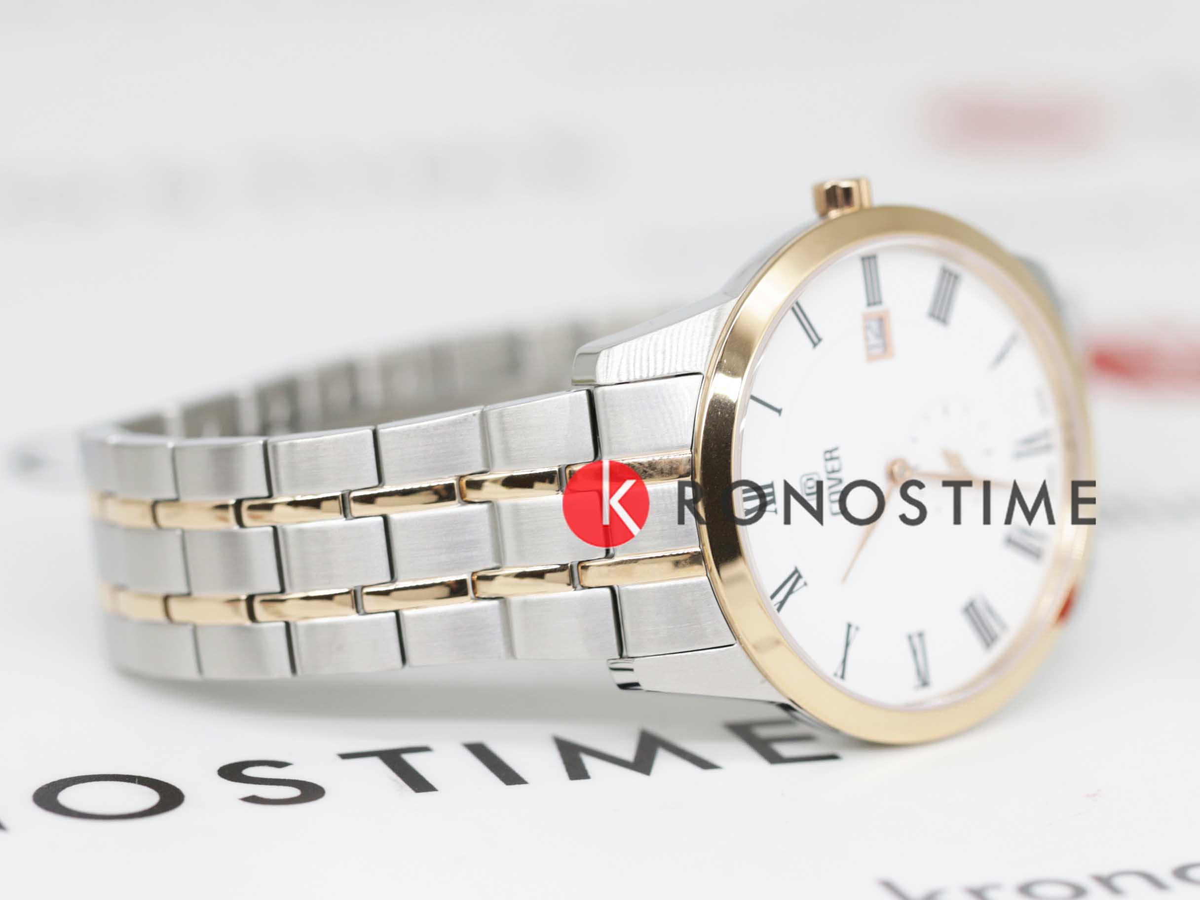Мужские наручные часы Cover CO194.08 из коллекции Nobila Gent сочетают в себе классический дизайн и надежность современных технологий. Модель обладает круглым корпусом диаметром 40 мм, изготовленным из нержавеющей стали. Браслет с частичным PVD-покрытиемPVDУльтратонкое покрытие наносится в технике вакуумного напыления, сочетает в себе нитрид титана особой прочности со слоем золота или оксида хрома. Несёт в себе декоративную или защитную функцию., что обеспечивает высокую устойчивость к внешним воздействиям. БезельБезельВнешний ободок, закрепляющий стекло. В спортивных часах так называется поворотное кольцо с делениями на циферблате, выполняет роль таймера – замеряет отрезки времени на шкале. Неподвижный безель – элемент декора. Однонаправленно вращающийся безель на дайверских часах позволяет фиксировать моменты погружения и выныривания на поверхность. с PVD-покрытиемPVDУльтратонкое покрытие наносится в технике вакуумного напыления, сочетает в себе нитрид титана особой прочности со слоем золота или оксида хрома. Несёт в себе декоративную или защитную функцию.. Белый циферблат оснащен окном даты на «6 часах» и вынесенной секундной стрелкой на отдельном циферблате, делая модель практичной для повседневного использования. Для защиты используется сапфировое стеклоСапфировое стеклоПрочный и надёжный материал из кристалла сапфира синтетического происхождения, характеризующийся особой твёрдостью и устойчивостью к царапинам и повреждениям. с антибликовым покрытиемАнтибликовое покрытиеСлой оксида металла в 0,13-0,3 микрон, благодаря которому стекло часов не бликует и не отражает свет. Антибликовое покрытие уменьшает отражение света в 10 раз, обеспечивая отличную читаемость показателей циферблата., обеспечивающее прочную защиту от царапин и оптимальную видимость в любых условиях. Часы работают на швейцарском кварцевом механизме Ronda 6004.D, что гарантирует точное время без необходимости подзаводки. Браслет выполнен из нержавеющей стали с раскладной застежкой, гарантирующей комфортное ношение и безопасность.Водонепроницаемость часов достигает 5 атмосфер (50 метров), что позволяет использовать их в условиях легкого контакта с водой, однако не рекомендуется для плавания или водных видов спорта.
