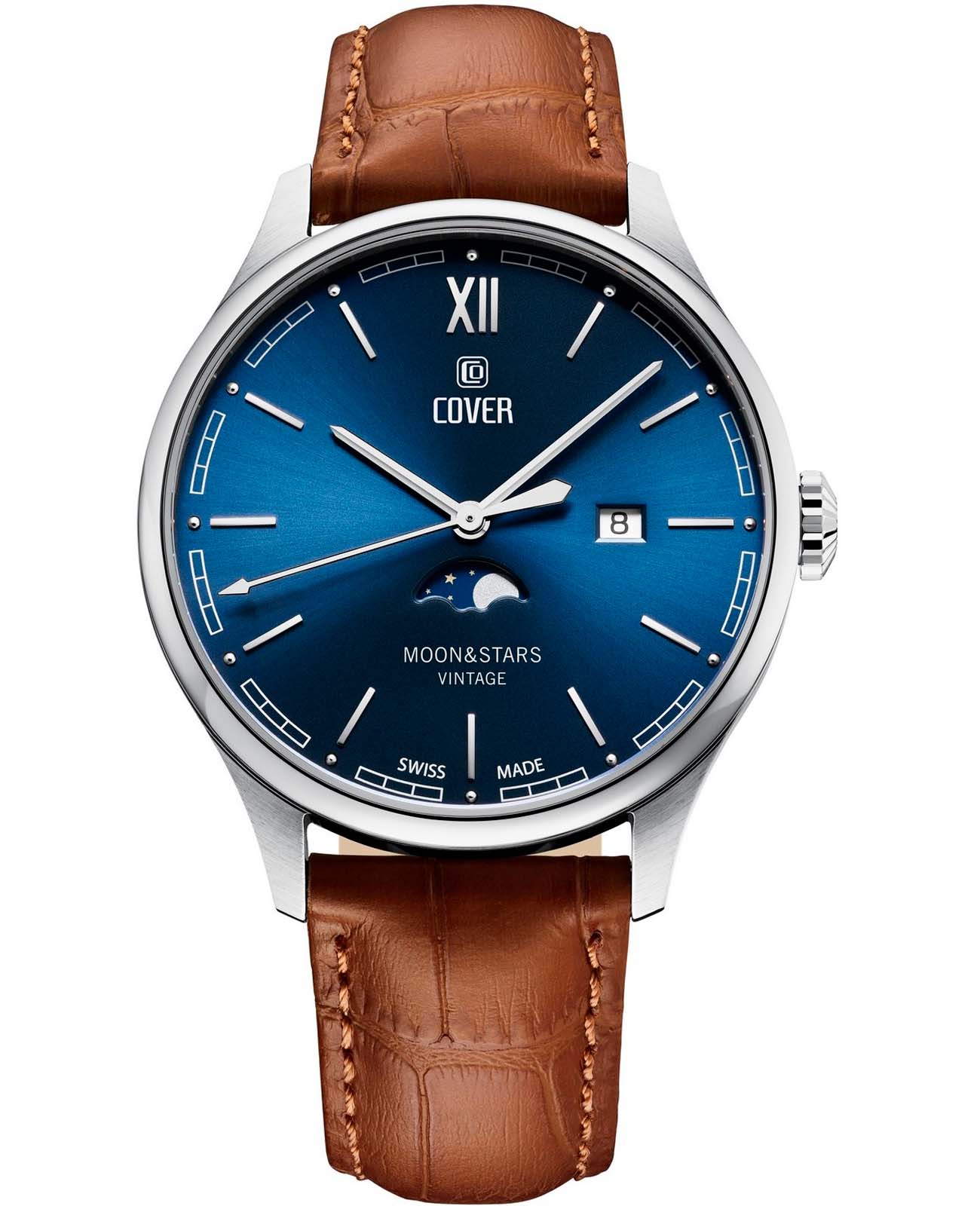 Мужские наручные часы Cover CO202.03 из коллекции Chapman Moon&Stars сочетают в себе классический дизайн и высокую точность швейцарского производства. Модель обладает круглым корпусом диаметром 41 мм, изготовленным из нержавеющей стали. Синий циферблат оснащен индикатором фаз Луны и окном даты на «3 часах». Для защиты используется минеральное стеклоМинеральное стеклоМинеральное стекло представляет собой искусственно выращенный минерал кварца. Такое стекло отличается особой устойчивостью к повреждениям и царапинам. Уступает по некоторым качествам сапфировому стеклу. с антибликовым покрытиемАнтибликовое покрытиеСлой оксида металла в 0,13-0,3 микрон, благодаря которому стекло часов не бликует и не отражает свет. Антибликовое покрытие уменьшает отражение света в 10 раз, обеспечивая отличную читаемость показателей циферблата., обеспечивающее прочную защиту от царапин и превосходную читаемость времени даже при ярком свете. Часы работают на кварцевом механизме, гарантирующем исключительную точность хода. Браслет выполнен из кожи с классической застежкой для комфортного ношения. Водонепроницаемость достигает 5 атмосфер (50 метров), что позволяет использовать их в повседневной жизни, однако не рекомендуется для плавания или дайвинга. Эти швейцарские часы станут идеальным дополнением как классического, так и современного образа мужчины, ценящего качество и стиль.