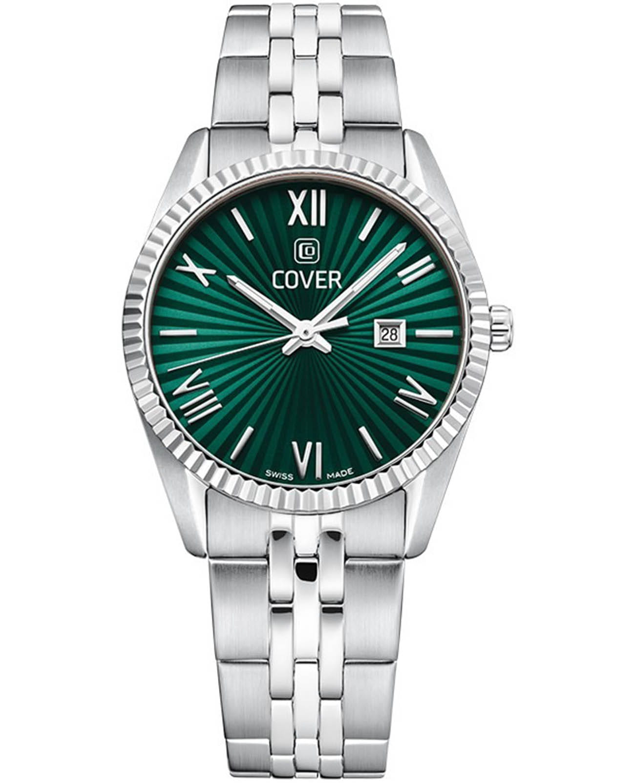 Часы COVER CO217.04 из коллекции Alston – элегантная модель швейцарского производства. Эти часы станут идеальным аксессуаром для элегантных дам, которые ценят стиль и качество. Корпус и браслет с раскладной застёжкойРаскладная застёжкаТакой тип застёжки используется только на браслетах из металла. Она никогда не раскрывается полностью, происходит разделение на 2 и более частей. Раскладывающая застёжка снизит вероятность потери часов к минимуму. изготовлены из нержавеющей стали, имеют диаметр 30 мм. На зеленом циферблате расположены  накладные римские цифры. Надежное минеральное стеклоМинеральное стеклоМинеральное стекло представляет собой искусственно выращенный минерал кварца. Такое стекло отличается особой устойчивостью к повреждениям и царапинам. Уступает по некоторым качествам сапфировому стеклу. защищает часы от царапин и долго сохраняет первоначальный внешний вид. Они показывают день месяца, индикатор которых с накладной рамкой расположен в положении «3 часа». Водозащита 50 метров делает часы практичными для повседневного использования. На часовую, минутную стрелки нанесено люминесцентное покрытиеЛюминесцентное покрытиеПозволяет считывать показания времени в темноте. Производители наносят на стрелки, часовые индексы, безель или поверхность циферблата светонакопительный состав, дающий холодное свечение., которое светится в темноте, создавая необычное изображение. Эти часы идеально подойдут для светских раутов, бизнес-встреч и других важных событий, подчеркнут вашу элегантность и статус.