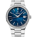 Cover Jumeira CO218.02 – элегантные женские часы, сочетающие современный дизайн и швейцарское качество. Корпус диаметром 36 мм выполнен из нержавеющей стали 316L, что придаёт модели роскошный вид и обеспечивает долговечность. БезельБезельВнешний ободок, закрепляющий стекло. В спортивных часах так называется поворотное кольцо с делениями на циферблате, выполняет роль таймера – замеряет отрезки времени на шкале. Неподвижный безель – элемент декора. Однонаправленно вращающийся безель на дайверских часах позволяет фиксировать моменты погружения и выныривания на поверхность. украшен кристаллами, добавляя изысканности и блеска, а поверхность циферблата защищена сапфировым стекломСапфировое стеклоПрочный и надёжный материал из кристалла сапфира синтетического происхождения, характеризующийся особой твёрдостью и устойчивостью к царапинам и повреждениям., устойчивым к царапинам. Часы оснащены швейцарским кварцевым механизмом, обеспечивающим точный ход и надёжность. Функциональность дополняется окошком даты, расположенным на позиции «3 часа». Браслет из нержавеющей стали оснащён раскладной застёжкойРаскладная застёжкаТакой тип застёжки используется только на браслетах из металла. Она никогда не раскрывается полностью, происходит разделение на 2 и более частей. Раскладывающая застёжка снизит вероятность потери часов к минимуму., обеспечивающей удобную и надёжную фиксацию на запястье. Водонепроницаемость 50 метров (5 ATM) позволяет использовать часы в повседневной жизни, защищая их от случайных брызг и дождя.