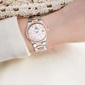 Cover Jumeira CO218.05 – элегантные женские часы, сочетающие современный дизайн и швейцарское качество. Корпус диаметром 36 мм выполнен из нержавеющей стали 316L, что придаёт модели роскошный вид и обеспечивает долговечность. БезельБезельВнешний ободок, закрепляющий стекло. В спортивных часах так называется поворотное кольцо с делениями на циферблате, выполняет роль таймера – замеряет отрезки времени на шкале. Неподвижный безель – элемент декора. Однонаправленно вращающийся безель на дайверских часах позволяет фиксировать моменты погружения и выныривания на поверхность. с PVD-покрытиемPVDУльтратонкое покрытие наносится в технике вакуумного напыления, сочетает в себе нитрид титана особой прочности со слоем золота или оксида хрома. Несёт в себе декоративную или защитную функцию. украшен кристаллами, добавляя изысканности и блеска, а поверхность перламутрового циферблата защищена сапфировым стекломСапфировое стеклоПрочный и надёжный материал из кристалла сапфира синтетического происхождения, характеризующийся особой твёрдостью и устойчивостью к царапинам и повреждениям., устойчивым к царапинам. Часы оснащены швейцарским кварцевым механизмом, обеспечивающим точный ход и надёжность. Функциональность дополняется окошком даты, расположенным на позиции «3 часа». Браслет из нержавеющей стали с частичным PVD-покрытиемPVDУльтратонкое покрытие наносится в технике вакуумного напыления, сочетает в себе нитрид титана особой прочности со слоем золота или оксида хрома. Несёт в себе декоративную или защитную функцию. оснащён раскладной застёжкойРаскладная застёжкаТакой тип застёжки используется только на браслетах из металла. Она никогда не раскрывается полностью, происходит разделение на 2 и более частей. Раскладывающая застёжка снизит вероятность потери часов к минимуму., обеспечивающей удобную и надёжную фиксацию на запястье. Водонепроницаемость 50 метров (5 ATM) позволяет использовать часы в повседневной жизни, защищая их от случайных брызг и дождя.