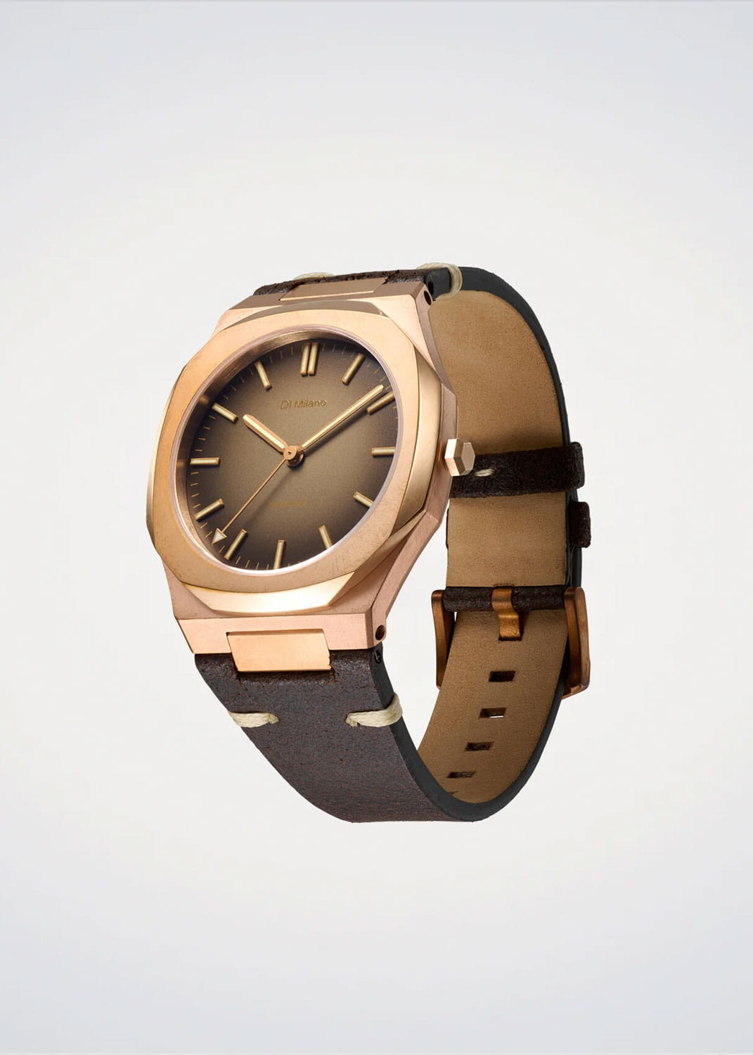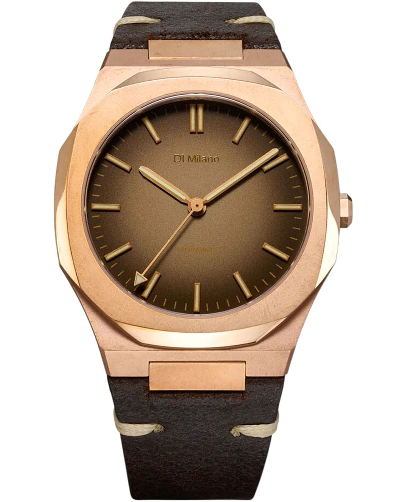 Часы D1 Milano Automatico BZLJ01 — это эффектные механические мужские часы, разработанные для ценителей уникальных аксессуаров. Их утонченный дизайн и высокое качество исполнения делают эти часы незаменимым элементом вашего стиля. Изготовленные в Италии, они оснащены надежным механизмом Miyota 9039 с автоподзаводом, обеспечивающими запас хода до 42 часа. Частота работы механизма составляет 28800 полуколебаний в час. Часы имеют корпус из бронзы, диаметром 40 мм, что гарантирует долговечность и стойкость к внешним воздействиям.Циферблат защищен сапфировым стекломСапфировое стеклоПрочный и надёжный материал из кристалла сапфира синтетического происхождения, характеризующийся особой твёрдостью и устойчивостью к царапинам и повреждениям. с антибликовым покрытиемАнтибликовое покрытиеСлой оксида металла в 0,13-0,3 микрон, благодаря которому стекло часов не бликует и не отражает свет. Антибликовое покрытие уменьшает отражение света в 10 раз, обеспечивая отличную читаемость показателей циферблата., подчеркивающим элегантность и изысканность модели и защищает от царапин. Стрелки с люминесцентным покрытиемЛюминесцентное покрытиеПозволяет считывать показания времени в темноте. Производители наносят на стрелки, часовые индексы, безель или поверхность циферблата светонакопительный состав, дающий холодное свечение.. Метки в виде штрихов придают часам особый шарм. Кожаный ремешок на стандартной застёжке обеспечивает комфортное и надежное ношение. Водозащита до 50 WR делает эти часы подходящими для повседневного использования.