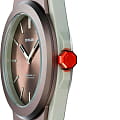 Часы D1 Milano CLRJ08 Sand Carbonlite из коллекции Carbonlite - воплощение инновационного дизайна и передовых материалов. Циферблат с метками в виде штрихов выполнен по технологии Sunray (солнечные лучи). Круглый корпус диаметром 40,5 мм и толщиной 9,7 мм изготовлен из композита углеродного нейлона с поликарбонатной рамкой. Циферблат выполнен в виде "сэндвича" из углеродного волокна. Часы оснащены кварцевым механизмом Miyota GL22, минеральное стекломМинеральное стеклоМинеральное стекло представляет собой искусственно выращенный минерал кварца. Такое стекло отличается особой устойчивостью к повреждениям и царапинам. Уступает по некоторым качествам сапфировому стеклу. с антибликовым покрытием и светло-зеленым силиконовым ремешком. Водонепроницаемость 5 АТМ, вес всего 47 г. Особенность этой коллекции - использование композитных материалов из углеродного нейлона и волокна, специально разработанных D1 Milano. Нить изготовлена из EPA-CF, прочность на растяжение 140 МПа, деформация 155 градусов, ударная вязкость 18,67 кДж/м2.