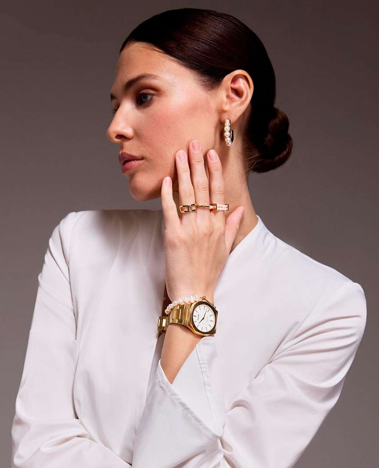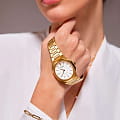 Женские наручные часы D1 Milano UTBL03 из коллекции Ultra Thin сочетают в себе классический дизайн и современные технологии. Модель обладает круглым корпусом диаметром 38 мм, изготовленным из нержавеющей стали с PVDPVDУльтратонкое покрытие наносится в технике вакуумного напыления, сочетает в себе нитрид титана особой прочности со слоем золота или оксида хрома. Несёт в себе декоративную или защитную функцию.-покрытием, что обеспечивает высокую устойчивость к внешним воздействиям. Браслет также выполнен из нержавеющей стали с раскладной застежкойРаскладной замокДанный вариант застежки используется только на часах с металлическим браслетом. Отличительная особенность такого крепления в том, что длина браслета становится универсальной и вы можете самостоятельно отрегулировать нужный вам размер – застежка просто двигается по браслету часов., гарантирующей комфортное ношение и безопасность. Циферблат украшен метками в виде штрихов и оснащен стрелочным механизмом, который подчеркивает элегантность модели. Для защиты используется сапфировое стеклоСапфировое стеклоПрочный и надёжный материал из кристалла сапфира синтетического происхождения, характеризующийся особой твёрдостью и устойчивостью к царапинам и повреждениям. с антибликовым покрытиемАнтибликовое покрытиеСлой оксида металла в 0,13-0,3 микрон, благодаря которому стекло часов не бликует и не отражает свет. Антибликовое покрытие уменьшает отражение света в 10 раз, обеспечивая отличную читаемость показателей циферблата., обеспечивающее прочную защиту от царапин и бликов. Часы работают на кварцевом механизме, что гарантирует точность хода с погрешностью +/- 15 секунд в месяц, не требуя регулярного подзавода. Водонепроницаемость часов достигает 5 атмосфер (50 метров), что позволяет использовать их во время мытья рук или плавания, однако не рекомендуется для глубоководного дайвинга. Толщина ультратонкого корпуса составляет всего 6 мм, делая аксессуар легким и удобным для повседневного использования.