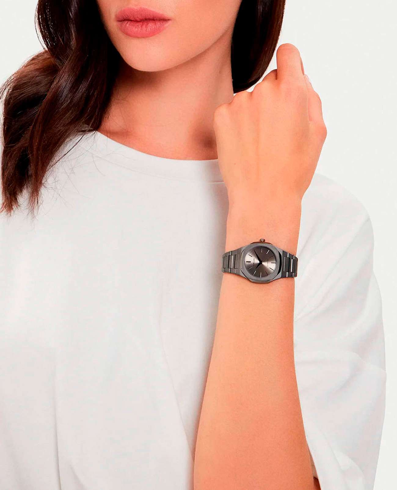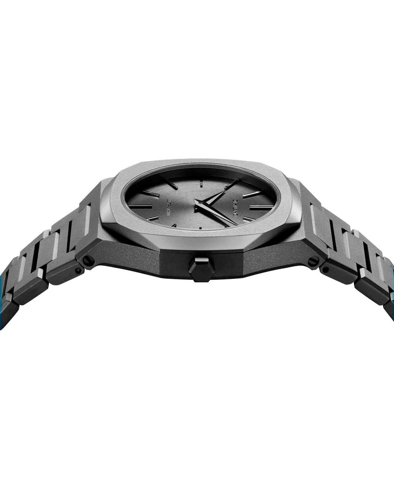 Женские наручные часы D1 Milano UTBL32 из коллекции Ultra Thin сочетают в себе элегантный дизайн и современные технологии. Модель обладает круглым корпусом диаметром 30 мм, изготовленным из нержавеющей стали с PVD-покрытиемPVDУльтратонкое покрытие наносится в технике вакуумного напыления, сочетает в себе нитрид титана особой прочности со слоем золота или оксида хрома. Несёт в себе декоративную или защитную функцию. светло-серого цвета (Light Gun Metal), что обеспечивает высокую устойчивость к внешним воздействиям. Для защиты циферблата используется сапфировое стеклоСапфировое стеклоПрочный и надёжный материал из кристалла сапфира синтетического происхождения, характеризующийся особой твёрдостью и устойчивостью к царапинам и повреждениям. с антибликовым покрытиемАнтибликовое покрытиеСлой оксида металла в 0,13-0,3 микрон, благодаря которому стекло часов не бликует и не отражает свет. Антибликовое покрытие уменьшает отражение света в 10 раз, обеспечивая отличную читаемость показателей циферблата., которое эффективно противостоит царапинам и механическим повреждениям. Часы оснащены кварцевым механизмом Miyota 1L22, гарантирующим точное время без необходимости подзаводки. Водонепроницаемость модели достигает 5 атмосфер (50 метров), что позволяет использовать их при контакте с водой, например, во время мытья рук или дождя. Браслет выполнен из нержавеющей стали с PVD-покрытиемPVDУльтратонкое покрытие наносится в технике вакуумного напыления, сочетает в себе нитрид титана особой прочности со слоем золота или оксида хрома. Несёт в себе декоративную или защитную функцию. и с раскладной застежкойРаскладной замокДанный вариант застежки используется только на часах с металлическим браслетом. Отличительная особенность такого крепления в том, что длина браслета становится универсальной и вы можете самостоятельно отрегулировать нужный вам размер – застежка просто двигается по браслету часов., обеспечивающей комфортное ношение и безопасность. Циферблат с узором Light Sunray серого цвета придает часам особую изысканность и делает их идеальным выбором для повседневного использования или особых случаев.