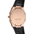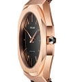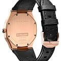Мужские наручные часы из коллекции Ultra Thin сочетают в себе современный дизайн и надежность технологий. Модель обладает круглым корпусом диаметром 40 мм, выполненным из высококачественной нержавеющей стали с PVD-покрытиемPVDУльтратонкое покрытие наносится в технике вакуумного напыления, сочетает в себе нитрид титана особой прочности со слоем золота или оксида хрома. Несёт в себе декоративную или защитную функцию. под розовое золото, что обеспечивает устойчивость к внешним воздействиям и придает изделию элегантный вид. Толщина корпуса составляет всего 6 мм, что делает часы ультратонкими и комфортными для повседневного использования. Черный циферблат украшен деталями в оттенке розового золота, создавая гармоничный и стильный образ. Защиту циферблата обеспечивает сапфировое стеклоСапфировое стеклоПрочный и надёжный материал из кристалла сапфира синтетического происхождения, характеризующийся особой твёрдостью и устойчивостью к царапинам и повреждениям., известное своей устойчивостью к царапинам и высокой прозрачностью. Часы оснащены кварцевым механизмом, гарантирующим точность хода без необходимости подзаводки. Ремешок выполнен из натуральной кожи, что обеспечивает комфортное ношение на протяжении всего дня. Водонепроницаемость модели составляет 5 атмосфер (50 метров), что позволяет использовать часы в повседневной жизни, включая контакт с водой при мытье рук или дожде, однако не рекомендуется для погружений или активных водных видов спорта. Изготовленные в Италии, эти часы станут стильным аксессуаром, идеально дополняющим как деловой, так и casual-образ.