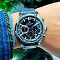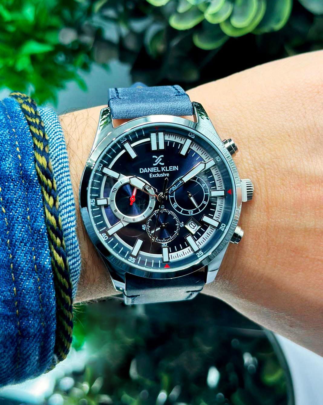 Мужские кварцевые часы Daniel Klein — это спортивный и функциональный аксессуар для активных мужчин. Корпус диаметром 43 мм выполнен из нержавеющей стали. Циферблат синего цвета выполнен по технологии Sunray («солнечные лучи») и оформлен штрихами и мечевидными стрелками в стиле Sword. Присутствуют индикаторы 24-часового формата времени и второго часового пояса (GMTВторой часовой поясФункция, позволяющая отображать время двух часовых поясов одновременно.). Окошко даты расположено между 4 и 5 часами. Стрелки и метки с люминесцентным покрытиемЛюминесцентное покрытиеПозволяет считывать показания времени в темноте. Производители наносят на стрелки, часовые индексы, безель или поверхность циферблата светонакопительный состав, дающий холодное свечение., обеспечивающим хорошую читаемость в темноте. Циферблат защищён минеральным стекломМинеральное стеклоМинеральное стекло представляет собой искусственно выращенный минерал кварца. Такое стекло отличается особой устойчивостью к повреждениям и царапинам. Уступает по некоторым качествам сапфировому стеклу.. Заводная головка рифлёная. Часы оснащены кожаным ремешком на классической пряжке. Водонепроницаемость 50 м позволяет использовать часы в повседневных условиях. Идеальный выбор для тех, кто ценит турецкое качество и универсальный дизайн.
