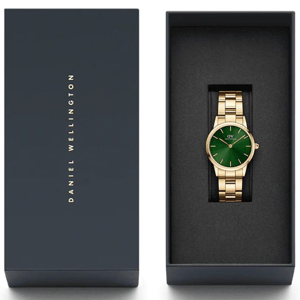 Женские наручные часы с минеральным стекломМинеральное стеклоМинеральное стекло представляет собой искусственно выращенный минерал кварца. Такое стекло отличается особой устойчивостью к повреждениям и царапинам. Уступает по некоторым качествам сапфировому стеклу. Daniel Wellington Iconic Link Emerald DW00100555, кварцевый механизм с высокой точностью. Класс водозащиты: 30 метров, позволит защитить корпус от случайных брызг или капель дождя. Корпус часов изготовлен из стали с PVD-покрытиемPVDУльтратонкое покрытие наносится в технике вакуумного напыления, сочетает в себе нитрид титана особой прочности со слоем золота или оксида хрома. Несёт в себе декоративную или защитную функцию.. Стальной браслет на застёжке-бабочке с кнопкамиЗастёжка "бабочка"Такой вид застёжки дополняется предохранителями, помогающими избежать случайного раскрытия браслета. Обладают изящным исполнением. с PVD-покрытиемPVDУльтратонкое покрытие наносится в технике вакуумного напыления, сочетает в себе нитрид титана особой прочности со слоем золота или оксида хрома. Несёт в себе декоративную или защитную функцию.. Японский кварцевый механизм. Циферблат выполнен по технологии Sunray (солнечные лучи). Накладные метки в виде штрихов. Рифленая заводная головка. Индивидуальный серийный номер.