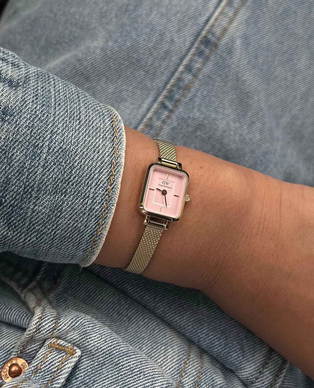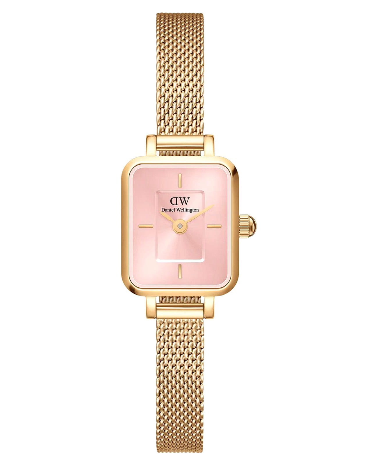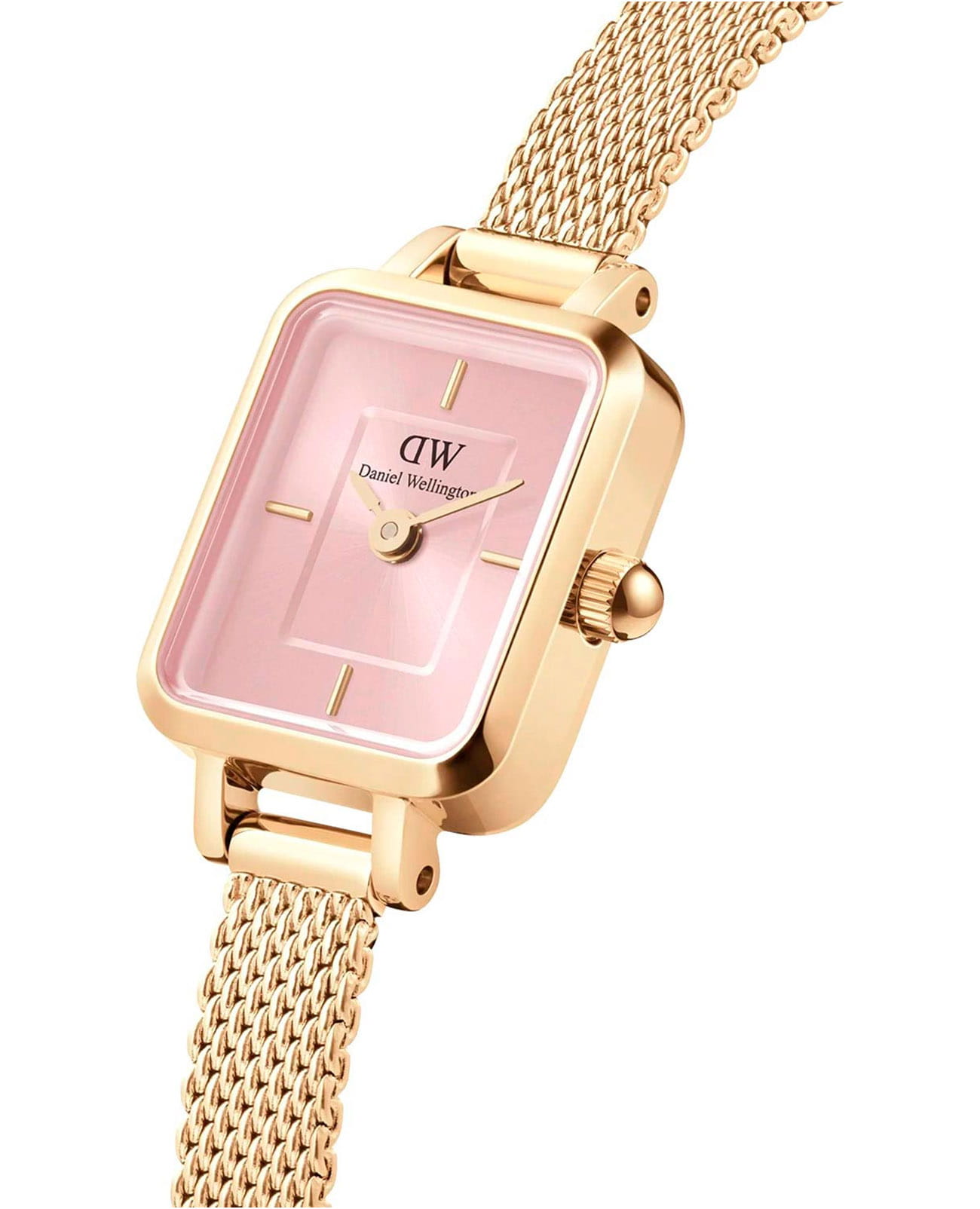 Женские наручные часы с минеральным стекломМинеральное стеклоМинеральное стекло представляет собой искусственно выращенный минерал кварца. Такое стекло отличается особой устойчивостью к повреждениям и царапинам. Уступает по некоторым качествам сапфировому стеклу. Daniel Wellington Quadro Mini DW00100655, кварцевый механизм с высокой точностью. Корпус часов изготовлен из стали с PVD-покрытиемPVDУльтратонкое покрытие наносится в технике вакуумного напыления, сочетает в себе нитрид титана особой прочности со слоем золота или оксида хрома. Несёт в себе декоративную или защитную функцию.. Двухуровневый циферблат выполнен по технологии Sunray (солнечные лучи) и украшен фирменным логотипом Daniel Wellington. Накладные метки в виде штрихов. Рифленая заводная головка. Индивидуальный серийный номер. Класс водозащиты: 30 метров, позволит защитить корпус от случайных брызг или капель дождя. Стальной браслет миланского плетения с PVD-покрытиемPVDУльтратонкое покрытие наносится в технике вакуумного напыления, сочетает в себе нитрид титана особой прочности со слоем золота или оксида хрома. Несёт в себе декоративную или защитную функцию. на раскладном замкеРаскладной замокДанный вариант застежки используется только на часах с металлическим браслетом. Отличительная особенность такого крепления в том, что длина браслета становится универсальной и вы можете самостоятельно отрегулировать нужный вам размер – застежка просто двигается по браслету часов..