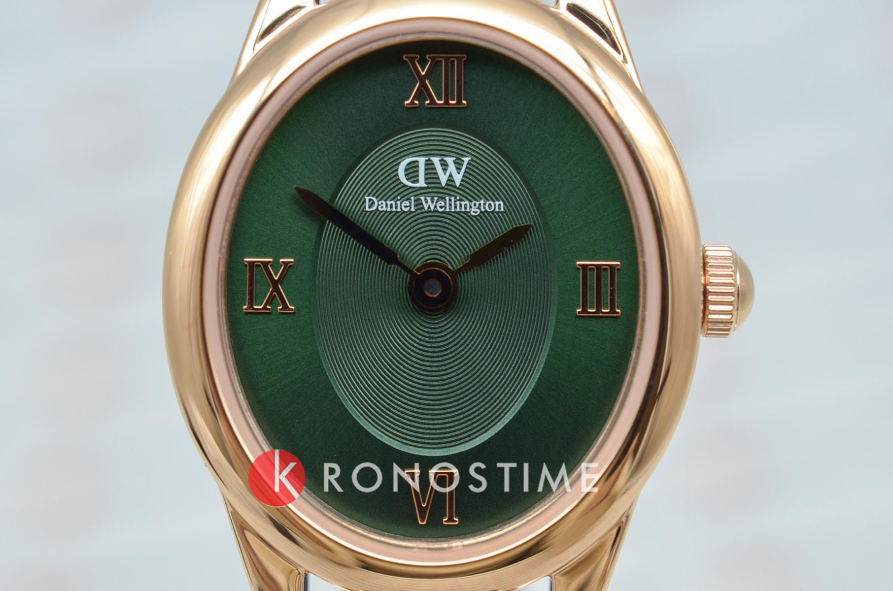 Daniel Wellington Ophelia — женственные часы с овальным корпусом 22 мм из нержавеющей стали с изящным PVDPVDУльтратонкое покрытие наносится в технике вакуумного напыления, сочетает в себе нитрид титана особой прочности со слоем золота или оксида хрома. Несёт в себе декоративную или защитную функцию.-покрытием в цвете розового золота. Глубокий циферблат с радиальным переливом украшен римскими индексами, что придаёт образу классическую элегантность.
