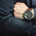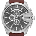 Мужские часы-хронографХронографФункция позволяет измерять отрезки времени с особой точностью: часы, минуты, секунды. Верным признаком хронографа является наличие на циферблате 3 дополнительных окошек-счётчиков.. Diesel MS9 Chrono DZ4290, кварцевый механизм с высокой точностью. Кварцевый хронографХронографФункция позволяет измерять отрезки времени с особой точностью: часы, минуты, секунды. Верным признаком хронографа является наличие на циферблате 3 дополнительных окошек-счётчиков.. Класс водозащиты: 100 метров, позволит плавать, нырять и заниматься другими водными видами спорта. Корпус часов изготовлен из стали. Индикация даты на позиции трех часов. Устойчивое к мелким механическим повреждениям минеральное стеклоМинеральное стеклоМинеральное стекло представляет собой искусственно выращенный минерал кварца. Такое стекло отличается особой устойчивостью к повреждениям и царапинам. Уступает по некоторым качествам сапфировому стеклу.. Завинчивающаяся задняя крышка. Серый циферблат с часовыми индексами в форме штрихов и арабских цифр. Заводная головка с защитой. Кожаный ремешок коричневого цвета. Классическая застежка выполнена из полированной нержавеющей стали.