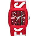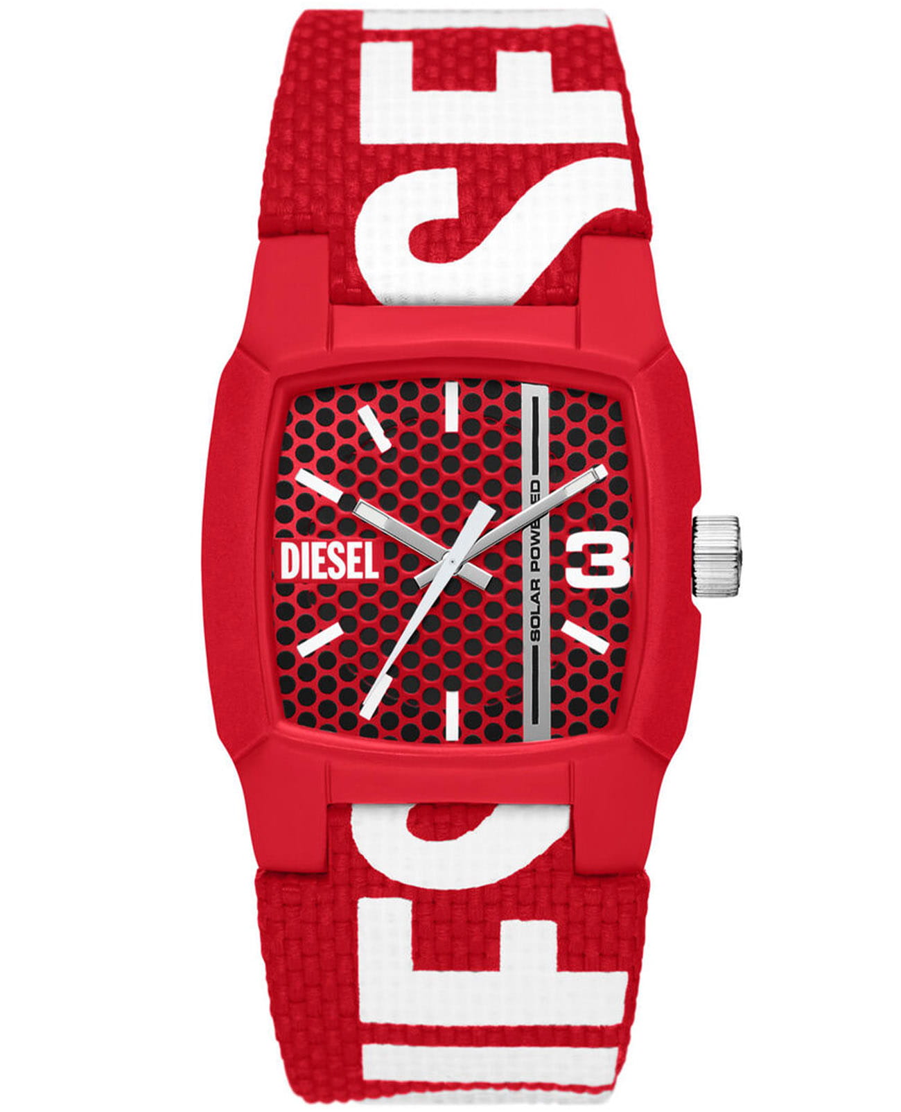 Мужские наручные часы с минеральным стекломМинеральное стеклоМинеральное стекло представляет собой искусственно выращенный минерал кварца. Такое стекло отличается особой устойчивостью к повреждениям и царапинам. Уступает по некоторым качествам сапфировому стеклу. Diesel Cliffhanger DZ2168, кварцевый механизм с высокой точностью. Класс водозащиты: 30 метров, позволит защитить корпус от случайных брызг или капель дождя. Квадратный корпус часов изготовлен из нейлона. Циферблат содержит накладные метки. Силиконовый ремешок на стандартной застёжке.