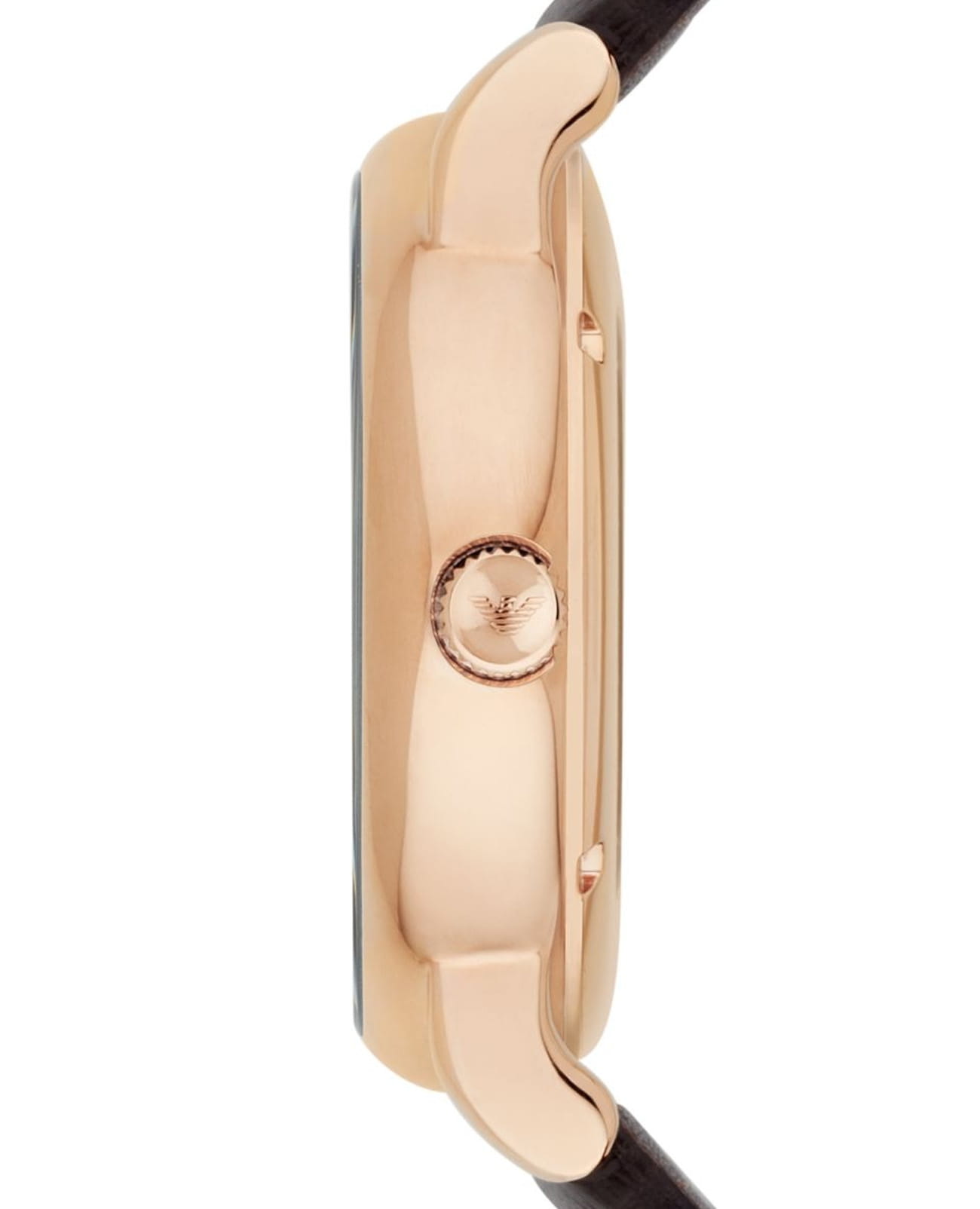Мужские механические часы с минеральным стекломМинеральное стеклоМинеральное стекло представляет собой искусственно выращенный минерал кварца. Такое стекло отличается особой устойчивостью к повреждениям и царапинам. Уступает по некоторым качествам сапфировому стеклу. Emporio Armani Dress AR1983. Корпус часов изготовлен из стали с PVD-покрытиемPVDУльтратонкое покрытие наносится в технике вакуумного напыления, сочетает в себе нитрид титана особой прочности со слоем золота или оксида хрома. Несёт в себе декоративную или защитную функцию.. Стрелки с люминесцентным покрытиемЛюминесцентное покрытиеПозволяет считывать показания времени в темноте. Производители наносят на стрелки, часовые индексы, безель или поверхность циферблата светонакопительный состав, дающий холодное свечение.. Класс водозащиты: 30 метров, позволит защитить корпус от случайных брызг или капель дождя. Кожаный ремешок на стандартной застежке.