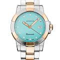 Женские кварцевые часы Epos из коллекции Ladies Diamonds — это элегантный аксессуар, сочетающий швейцарское качество и изысканный дизайн. Корпус диаметром 36 мм и толщиной 9 мм выполнен из нержавеющей стали 316L, безель с частичным PVD-покрытиемPVDУльтратонкое покрытие наносится в технике вакуумного напыления, сочетает в себе нитрид титана особой прочности со слоем золота или оксида хрома. Несёт в себе декоративную или защитную функцию. розового золота. Циферблат с перламутровой вставкой бирюзового оттенка выполнен по технологии «солнечные лучи» и украшен синтетическими бриллиантами. Циферблат защищён сапфировым стекломСапфировое стеклоПрочный и надёжный материал из кристалла сапфира синтетического происхождения, характеризующийся особой твёрдостью и устойчивостью к царапинам и повреждениям.. Метки в виде точек инкрустированы бриллиантами. Стрелки с люминесцентным покрытиемЛюминесцентное покрытиеПозволяет считывать показания времени в темноте. Производители наносят на стрелки, часовые индексы, безель или поверхность циферблата светонакопительный состав, дающий холодное свечение., обеспечивающим хорошую читаемость в темноте. Окошко даты расположено в положении 3 часов. Механизм — швейцарский кварцевый калибр Ronda 705. Часы оснащены стальным браслетом комбинированного цвета на раскладной застёжкеРаскладная застёжкаТакой тип застёжки используется только на браслетах из металла. Она никогда не раскрывается полностью, происходит разделение на 2 и более частей. Раскладывающая застёжка снизит вероятность потери часов к минимуму.. Водонепроницаемость 50 м позволяет использовать часы в повседневных условиях.