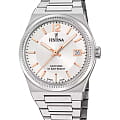 Женские наручные часы Festina F20035/2 с кварцевым механизмом высокой точности. Кварцевый механизм с высокой точностью. Сапфировое стеклоСапфировое стеклоПрочный и надёжный материал из кристалла сапфира синтетического происхождения, характеризующийся особой твёрдостью и устойчивостью к царапинам и повреждениям. устойчивое к появлению царапин, обладающее высокой прозрачностью. Класс водозащиты: 100 метров, позволит плавать, нырять и заниматься другими водными видами спорта. Корпус часов изготовлен из нержавеющей стали. Стальной браслет застёжке-бабочке. Стрелки и метки с люминесцентным покрытиемЛюминесцентное покрытиеПозволяет считывать показания времени в темноте. Производители наносят на стрелки, часовые индексы, безель или поверхность циферблата светонакопительный состав, дающий холодное свечение.. Окошко даты находится в положении 3 часа.