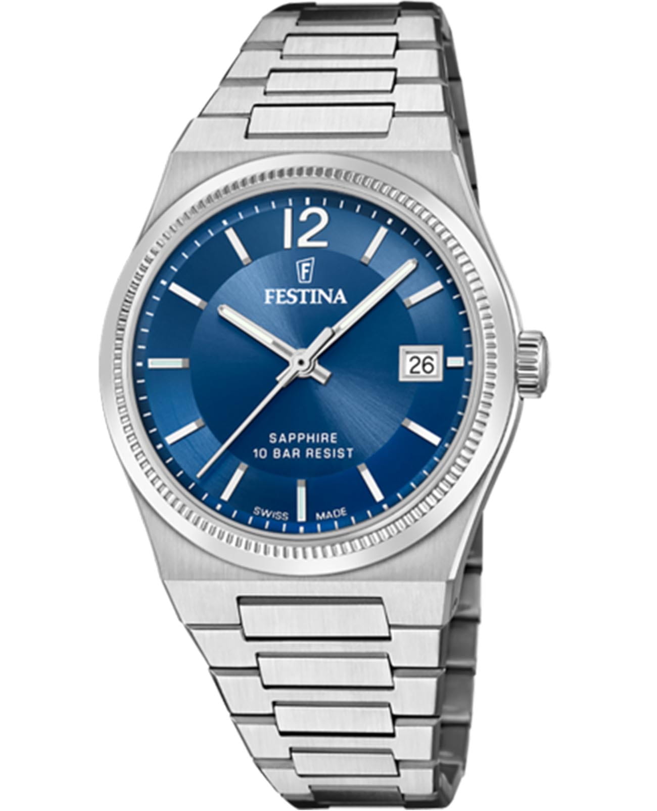 Женские наручные часы Festina F20035/4 с кварцевым механизмом высокой точности. Кварцевый механизм с высокой точностью. Сапфировое стеклоСапфировое стеклоПрочный и надёжный материал из кристалла сапфира синтетического происхождения, характеризующийся особой твёрдостью и устойчивостью к царапинам и повреждениям. устойчивое к появлению царапин, обладающее высокой прозрачностью. Класс водозащиты: 100 метров, позволит плавать, нырять и заниматься другими водными видами спорта. Корпус часов изготовлен из нержавеющей стали. Стальной браслет застёжке-бабочке. Стрелки и метки с люминесцентным покрытиемЛюминесцентное покрытиеПозволяет считывать показания времени в темноте. Производители наносят на стрелки, часовые индексы, безель или поверхность циферблата светонакопительный состав, дающий холодное свечение.. Окошко даты находится в положении 3 часа.