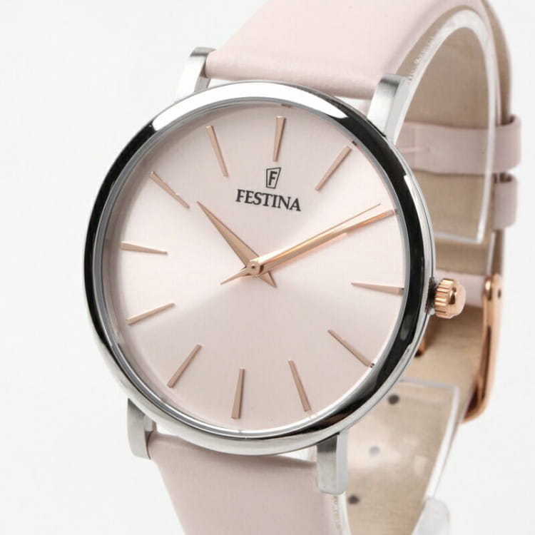 Женские кварцевые часы с минеральным стекломМинеральное стеклоМинеральное стекло представляет собой искусственно выращенный минерал кварца. Такое стекло отличается особой устойчивостью к повреждениям и царапинам. Уступает по некоторым качествам сапфировому стеклу. Festina Boyfriend F20371/2, кварцевый механизм с высокой точностью. Класс водозащиты: 30 метров, позволит защитить корпус от случайных брызг или капель дождя. Корпус часов изготовлен из стали. Кожаный ремешок на стандартной застёжке. Эффектные женские часы в лаконичном дизайне - отличное дополнение вашего образа.