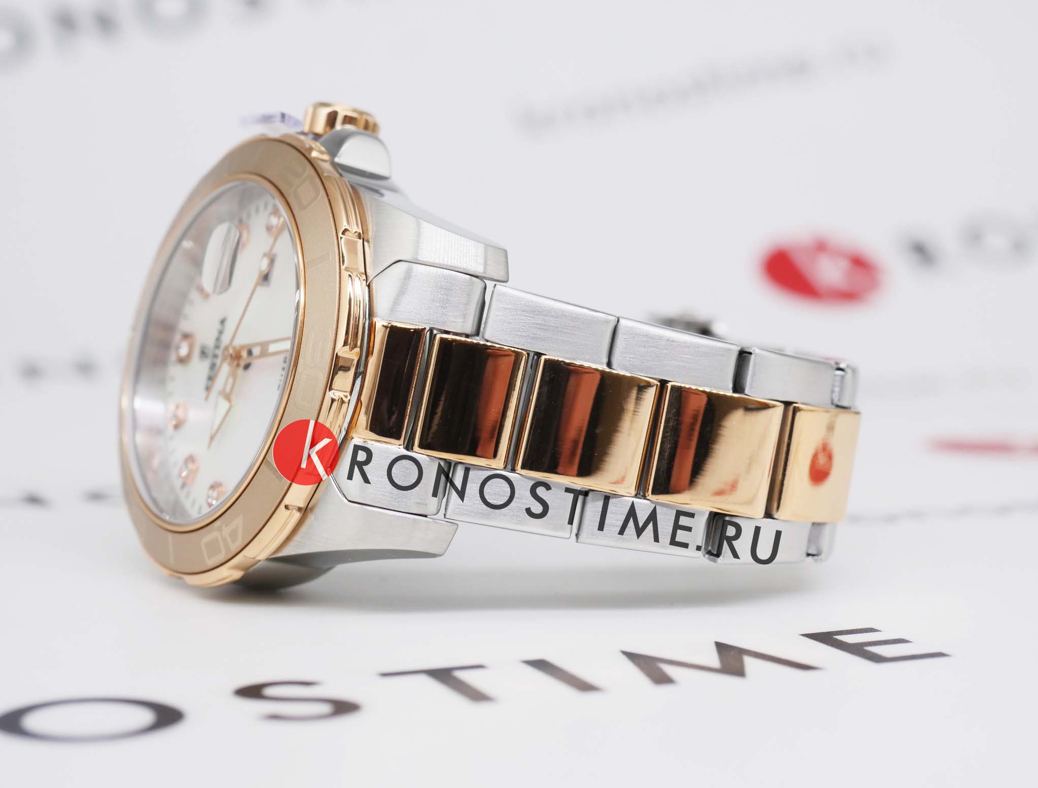 Яркий стиль и функциональность этих часов придутся по душе активной девушке. Кварцевый механизм с высокой точностью. Минеральное стеклоМинеральное стеклоМинеральное стекло представляет собой искусственно выращенный минерал кварца. Такое стекло отличается особой устойчивостью к повреждениям и царапинам. Уступает по некоторым качествам сапфировому стеклу. устойчивое к появлению царапин, обладающее высокой прозрачностью. Циферблат выполнен по технологии Sunray (солнечные лучи). Класс водозащиты: 100 метров, позволит плавать, нырять и заниматься другими водными видами спорта. Корпус часов изготовлен из нержавеющей стали. БезельБезельВнешний ободок, закрепляющий стекло. В спортивных часах так называется поворотное кольцо с делениями на циферблате, выполняет роль таймера – замеряет отрезки времени на шкале. Неподвижный безель – элемент декора. Однонаправленно вращающийся безель на дайверских часах позволяет фиксировать моменты погружения и выныривания на поверхность. c IP-покрытиемIP-покрытиеМетод ионного напыления. Демонстрирует повышенную устойчивость к истиранию, окислению и химическим веществам. Под воздействием высокого давления и температуры около 1500°C молекулы металла надёжно соединяются с частицами корпуса часов.. Браслет с частичным IP-покрытиемIP-покрытиеМетод ионного напыления. Демонстрирует повышенную устойчивость к истиранию, окислению и химическим веществам. Под воздействием высокого давления и температуры около 1500°C молекулы металла надёжно соединяются с частицами корпуса часов. и с раскладной застёжкойРаскладная застёжкаТакой тип застёжки используется только на браслетах из металла. Она никогда не раскрывается полностью, происходит разделение на 2 и более частей. Раскладывающая застёжка снизит вероятность потери часов к минимуму..
