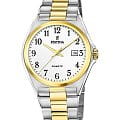 Наручные мужские часы с окошком даты Festina Clasico F20554/1, кварцевый механизм с высокой точностью, минеральное стеклоМинеральное стеклоМинеральное стекло представляет собой искусственно выращенный минерал кварца. Такое стекло отличается особой устойчивостью к повреждениям и царапинам. Уступает по некоторым качествам сапфировому стеклу.. Корпус и браслет часов изготовлены из стали с частичным PVDPVDУльтратонкое покрытие наносится в технике вакуумного напыления, сочетает в себе нитрид титана особой прочности со слоем золота или оксида хрома. Несёт в себе декоративную или защитную функцию. покрытием. Браслет на раскладной застёжкеРаскладная застёжкаТакой тип застёжки используется только на браслетах из металла. Она никогда не раскрывается полностью, происходит разделение на 2 и более частей. Раскладывающая застёжка снизит вероятность потери часов к минимуму.