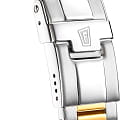Яркий стиль и функциональность этих часов придутся по душе активной девушке. Часы-хронографХронографФункция позволяет измерять отрезки времени с особой точностью: часы, минуты, секунды. Верным признаком хронографа является наличие на циферблате 3 дополнительных окошек-счётчиков.. Кварцевый механизм с высокой точностью. Минеральное стеклоМинеральное стеклоМинеральное стекло представляет собой искусственно выращенный минерал кварца. Такое стекло отличается особой устойчивостью к повреждениям и царапинам. Уступает по некоторым качествам сапфировому стеклу. устойчивое к появлению царапин, обладающее высокой прозрачностью. Перламутровый циферблат. Метки украшены кристаллами. Класс водозащиты: 100 метров, позволит плавать, нырять и заниматься другими водными видами спорта. Корпус часов изготовлен из нержавеющей стали. БезельБезельВнешний ободок, закрепляющий стекло. В спортивных часах так называется поворотное кольцо с делениями на циферблате, выполняет роль таймера – замеряет отрезки времени на шкале. Неподвижный безель – элемент декора. Однонаправленно вращающийся безель на дайверских часах позволяет фиксировать моменты погружения и выныривания на поверхность. c IP-покрытиемIP-покрытиеМетод ионного напыления. Демонстрирует повышенную устойчивость к истиранию, окислению и химическим веществам. Под воздействием высокого давления и температуры около 1500°C молекулы металла надёжно соединяются с частицами корпуса часов.. Браслет с частичным IP-покрытиемIP-покрытиеМетод ионного напыления. Демонстрирует повышенную устойчивость к истиранию, окислению и химическим веществам. Под воздействием высокого давления и температуры около 1500°C молекулы металла надёжно соединяются с частицами корпуса часов. и с раскладной застёжкойРаскладная застёжкаТакой тип застёжки используется только на браслетах из металла. Она никогда не раскрывается полностью, происходит разделение на 2 и более частей. Раскладывающая застёжка снизит вероятность потери часов к минимуму..