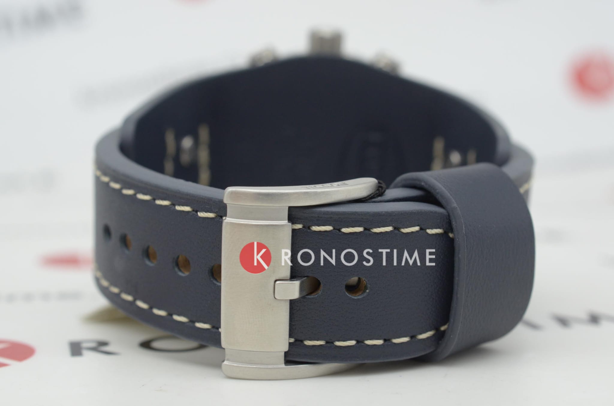 Мужские наручные часы, оснащённые хронографом с тахометрической шкалой, выполненные в спортивном стиле на широком кожаном ремешке.
