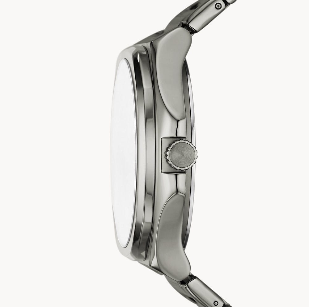 Мужские наручные часы с минеральным стекломМинеральное стеклоМинеральное стекло представляет собой искусственно выращенный минерал кварца. Такое стекло отличается особой устойчивостью к повреждениям и царапинам. Уступает по некоторым качествам сапфировому стеклу. Fossil Evanston BQ2767, кварцевый механизм с высокой точностью. Класс водозащиты: 50 метров, позволит защитить корпус от случайных брызг или капель дождя. Корпус часов изготовлен из стали. Стальной браслет на раскладной застёжкеРаскладная застёжкаТакой тип застёжки используется только на браслетах из металла. Она никогда не раскрывается полностью, происходит разделение на 2 и более частей. Раскладывающая застёжка снизит вероятность потери часов к минимуму.. Стрелки и метки с люминесцентным покрытиемЛюминесцентное покрытиеПозволяет считывать показания времени в темноте. Производители наносят на стрелки, часовые индексы, безель или поверхность циферблата светонакопительный состав, дающий холодное свечение..
