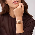Женские американские часы с минеральным стекломМинеральное стеклоМинеральное стекло представляет собой искусственно выращенный минерал кварца. Такое стекло отличается особой устойчивостью к повреждениям и царапинам. Уступает по некоторым качествам сапфировому стеклу. Fossil Raquel ES5323, кварцевый механизм с высокой точностью. Корпус и браслет часов изготовлены из нержавеющей стали с IP-покрытиемIP-покрытиеМетод ионного напыления. Демонстрирует повышенную устойчивость к истиранию, окислению и химическим веществам. Под воздействием высокого давления и температуры около 1500°C молекулы металла надёжно соединяются с частицами корпуса часов.. Класс водозащиты: 50 метров, позволит защитить корпус от случайных брызг или капель дождя. Стальной браслет на раскладной застёжкеРаскладная застёжкаТакой тип застёжки используется только на браслетах из металла. Она никогда не раскрывается полностью, происходит разделение на 2 и более частей. Раскладывающая застёжка снизит вероятность потери часов к минимуму.. Окошко даты находится в положении 6 часов. Циферблат украшен кристаллами.