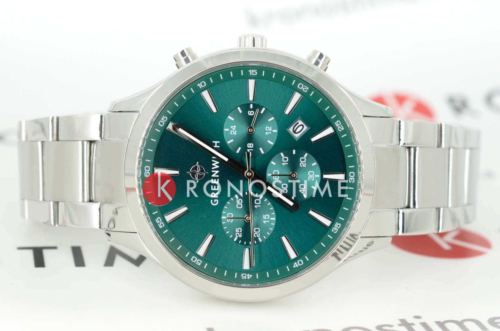 Мужские наручные часы Greenwich Skipper GW 043.10.37 представляют собой классический вариант для повседневной носки. Корпус из нержавеющей стали диаметром 42 мм сбалансирован и элегантен. Минеральное стеклоМинеральное стеклоМинеральное стекло представляет собой искусственно выращенный минерал кварца. Такое стекло отличается особой устойчивостью к повреждениям и царапинам. Уступает по некоторым качествам сапфировому стеклу. защищает циферблат от царапин и обеспечивает отличную читаемость при любом освещении. Люминесцентное покрытиеЛюминесцентное покрытиеПозволяет считывать показания времени в темноте. Производители наносят на стрелки, часовые индексы, безель или поверхность циферблата светонакопительный состав, дающий холодное свечение. стрелок и меток позволит следить за временем даже в полной темноте. Стальной браслет на раскладной застёжкеРаскладная застёжкаТакой тип застёжки используется только на браслетах из металла. Она никогда не раскрывается полностью, происходит разделение на 2 и более частей. Раскладывающая застёжка снизит вероятность потери часов к минимуму. идеально дополняют дизайн часов, обеспечивая комфортное ношение. Класс водозащиты: 100 метров, позволит плавать, нырять и заниматься другими водными видами спорта. Дополнительные индикаторы: 24-х часов, даты, счетчиками минут и секунд. В положении «5 часов» находится окошко даты. Крупные кнопки хронографаХронографФункция позволяет измерять отрезки времени с особой точностью: часы, минуты, секунды. Верным признаком хронографа является наличие на циферблате 3 дополнительных окошек-счётчиков. и рифленая заводная головка удобны в использовании. На заводной головке и задней крышке расположился логотип: стилизованное изображение розы ветров. На задней крышке — гравировка корабля, плывущего навстречу приключениям.
