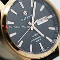 Мужские часы Greenwich Good Luck GW 054.41.31, механический механизм (автоматический калибр) с высокой точностью. Классический круглый стальной корпус с PVD-покрытиемPVDУльтратонкое покрытие наносится в технике вакуумного напыления, сочетает в себе нитрид титана особой прочности со слоем золота или оксида хрома. Несёт в себе декоративную или защитную функцию., защищенный минеральным стекломМинеральное стеклоМинеральное стекло представляет собой искусственно выращенный минерал кварца. Такое стекло отличается особой устойчивостью к повреждениям и царапинам. Уступает по некоторым качествам сапфировому стеклу.. Стрелки и метки с люминесцентным покрытиемЛюминесцентное покрытиеПозволяет считывать показания времени в темноте. Производители наносят на стрелки, часовые индексы, безель или поверхность циферблата светонакопительный состав, дающий холодное свечение.. Кожаный ремешок на стандартной застёжке. Класс водозащиты: 100 метров, позволит плавать, нырять и заниматься другими водными видами спорта. Окошко даты и дня недели находится в положении 3 часа.