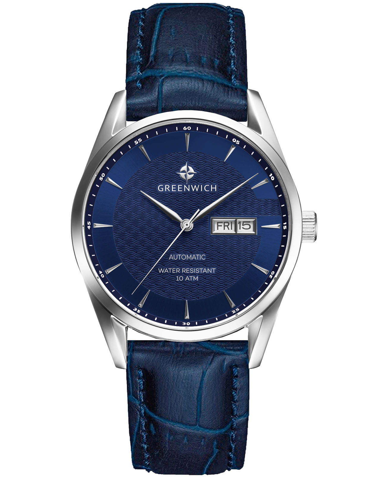 Мужские часы с минеральным стекломМинеральное стеклоМинеральное стекло представляет собой искусственно выращенный минерал кварца. Такое стекло отличается особой устойчивостью к повреждениям и царапинам. Уступает по некоторым качествам сапфировому стеклу. Greenwich Good Luck Classic GW 074.16.36, представляют собой классический вариант для повседневной носки. В центральной части циферблата — отличительная черта моделей этой серии: гильоше, объемные линии которого напоминают волны. Обратите внимание на форму пластины, где крепятся накладные риски: она сделана в форме латинской буквы G, первой буквы в названии бренда. Часы характеризуются традиционными формами, лаконичным исполнением, что делает модель элегантным дополнением к деловому костюму. Сквозь прозрачную заднюю крышку вы увидите детали механизма TMI с декорированным ротором: на нем выгравировано изображение символа английских моряков — парусника. Ремешок на стандартной застёжке выполнен из натуральной кожи с прошивкой в тон. Дизайн, актуальный для любого современного образа, и надежность используемых материалов делают автоматические часы Greenwich удобным и стильным аксессуаром на каждый день. Окошко даты и дня недели находится в положении 3 часа. Класс водозащиты: 100 метров, позволит плавать, нырять и заниматься другими водными видами спорта.