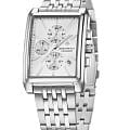 Мужские часы-хронографХронографФункция позволяет измерять отрезки времени с особой точностью: часы, минуты, секунды. Верным признаком хронографа является наличие на циферблате 3 дополнительных окошек-счётчиков. Greenwich Galeon Chrono GW 553.10.13, кварцевый механизм с минеральным стекломМинеральное стеклоМинеральное стекло представляет собой искусственно выращенный минерал кварца. Такое стекло отличается особой устойчивостью к повреждениям и царапинам. Уступает по некоторым качествам сапфировому стеклу.. Корпус из нержавеющей стали. Стрелки и метки с люминесцентным покрытиемЛюминесцентное покрытиеПозволяет считывать показания времени в темноте. Производители наносят на стрелки, часовые индексы, безель или поверхность циферблата светонакопительный состав, дающий холодное свечение.. Окошко даты находится в положении между 4 и 5 часами. Класс водозащиты: 50 метров, позволит защитить корпус от случайных брызг или капель дождя. Стальной браслет на раскладной застёжкеРаскладная застёжкаТакой тип застёжки используется только на браслетах из металла. Она никогда не раскрывается полностью, происходит разделение на 2 и более частей. Раскладывающая застёжка снизит вероятность потери часов к минимуму..