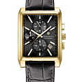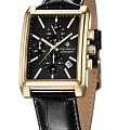 Часы Greenwich GW 553.21.11 из коллекции Galeon Chrono — элегантная мужская модель, сочетающая спортивный функционал и классическую элегантность. Корпус размером 33 x 40 мм выполнен из нержавеющей стали с PVD-покрытиемPVDУльтратонкое покрытие наносится в технике вакуумного напыления, сочетает в себе нитрид титана особой прочности со слоем золота или оксида хрома. Несёт в себе декоративную или защитную функцию. из жёлтого золота. Чёрный циферблат с тремя дополнительными циферблатами: минутным и секундным хронографами, а также 24-часовым индикатором, защищён минеральным стекломМинеральное стеклоМинеральное стекло представляет собой искусственно выращенный минерал кварца. Такое стекло отличается особой устойчивостью к повреждениям и царапинам. Уступает по некоторым качествам сапфировому стеклу.. Стрелки и часовые метки оснащены люминесцентным покрытием для удобного считывания в темноте.