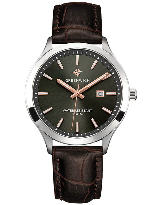 Мужские наручные часы Greenwich GW 041.12.34 представляют собой классический вариант для повседневной носки. Циферблат украшается брендовым логотипом, изображающим Розу Ветров. Эмблема мореплавательского духа символизирует удачу, стремление достигнуть поставленной цели. Часы характеризуются традиционными формами, лаконичным исполнением, что делает модель элегантным дополнением к деловому костюму. Надёжный корпус из нержавеющей стали спасает японский механизм от повреждений и ударов. Минеральное стекло отличается устойчивостью к образованию царапин на поверхности.