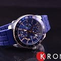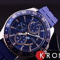 Циферблат синего цвета с позолоченным элементами дизайна.