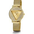 Женские наручные часы с минеральным стекломМинеральное стеклоМинеральное стекло представляет собой искусственно выращенный минерал кварца. Такое стекло отличается особой устойчивостью к повреждениям и царапинам. Уступает по некоторым качествам сапфировому стеклу. Guess GW0671L2, кварцевый механизм с высокой точностью. Класс водозащиты: 30 метров, позволит защитить корпус от случайных брызг или капель дождя. Корпус и браслет часов изготовлены из нержавеющей стали с IP-покрытиемIP-покрытиеМетод ионного напыления. Демонстрирует повышенную устойчивость к истиранию, окислению и химическим веществам. Под воздействием высокого давления и температуры около 1500°C молекулы металла надёжно соединяются с частицами корпуса часов..