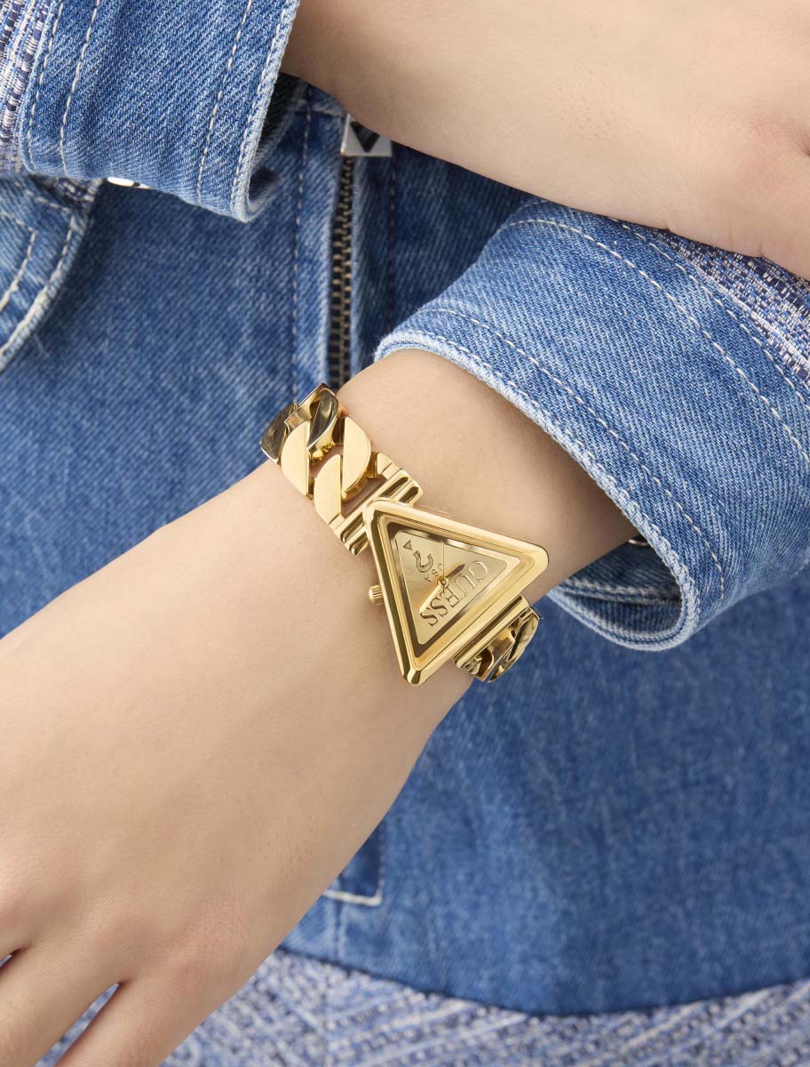 Часы Guess GW0859L2 — это стильный аксессуар для женщин, который сочетает в себе элегантность и практичность. Эти часы оснащены надежным кварцевым механизмом и имеют уникальный треугольный корпус из стали c золотистым IP-покрытиемIP-покрытиеМетод ионного напыления. Демонстрирует повышенную устойчивость к истиранию, окислению и химическим веществам. Под воздействием высокого давления и температуры около 1500°C молекулы металла надёжно соединяются с частицами корпуса часов. , который привлекает внимание своим оригинальным дизайном. Золотистый циферблат, выполненный по технологии Sunray, создает эффект солнечных лучей, добавляя глубину и изысканность. Циферблат без меток подчеркивает минималистичный и современный стиль. Рифленая заводная головка обеспечивает удобство настройки времени. Стальной браслет с золотистым IP-покрытиемIP-покрытиеМетод ионного напыления. Демонстрирует повышенную устойчивость к истиранию, окислению и химическим веществам. Под воздействием высокого давления и температуры около 1500°C молекулы металла надёжно соединяются с частицами корпуса часов. выполненный в виде цепи, обеспечивает надежную фиксацию на запястье и добавляет образу нотки изящества. Часы имеют водозащиту 30WR, что позволяет не беспокоиться о случайном попадании воды. Минеральное стеклоМинеральное стеклоМинеральное стекло представляет собой искусственно выращенный минерал кварца. Такое стекло отличается особой устойчивостью к повреждениям и царапинам. Уступает по некоторым качествам сапфировому стеклу. защищает циферблат от царапин и повреждений.