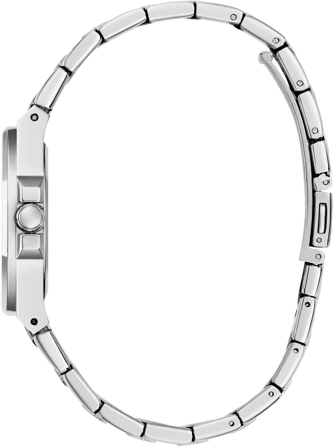 Элегантные женские наручные часы Guess GW0877L1 сочетают в себе стиль и функциональность. Эти часы оснащены точным кварцевым механизмом, что гарантирует надежность и долговечность. Корпус часов выполнен из прочной стали, а безельБезельВнешний ободок, закрепляющий стекло. В спортивных часах так называется поворотное кольцо с делениями на циферблате, выполняет роль таймера – замеряет отрезки времени на шкале. Неподвижный безель – элемент декора. Однонаправленно вращающийся безель на дайверских часах позволяет фиксировать моменты погружения и выныривания на поверхность. украшен изысканными кристаллами, придающими им роскошный вид. Серебристый циферблат с гильошированием добавляет изделию утонченности и особого шарма. Часы оснащены стальным браслетом с раскладной застежкойРаскладная застёжкаТакой тип застёжки используется только на браслетах из металла. Она никогда не раскрывается полностью, происходит разделение на 2 и более частей. Раскладывающая застёжка снизит вероятность потери часов к минимуму., который обеспечивает комфортное прилегание к запястью и надежную фиксацию. Люминесцентное покрытиеЛюминесцентное покрытиеПозволяет считывать показания времени в темноте. Производители наносят на стрелки, часовые индексы, безель или поверхность циферблата светонакопительный состав, дающий холодное свечение. на стрелках обеспечивает отличную видимость в темноте. Минеральное стеклоМинеральное стеклоМинеральное стекло представляет собой искусственно выращенный минерал кварца. Такое стекло отличается особой устойчивостью к повреждениям и царапинам. Уступает по некоторым качествам сапфировому стеклу. защищает циферблат от царапин и повреждений, сохраняя его безупречный вид. Водозащита 30WR гарантирует защиту от случайных брызг и дождя, что делает эти часы практичным аксессуаром для повседневной жизни.