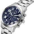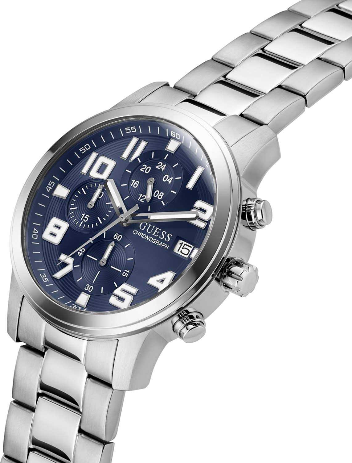 Часы Guess GW0917G1 — это стильный и функциональный аксессуар, который поможет вам всегда быть в курсе времени, независимо от обстоятельств. Эти мужские часы оснащены надежным кварцевым механизмом и имеют круглый стальной корпус диаметром 44 мм и толщиной 13 мм. Синий циферблат, выполненный по технологии Sunray, создает эффект солнечных лучей, добавляя глубину и элегантность дизайну. Циферблат оснащен метками в виде арабских цифр и поддерживает 12-ти и 24-х часовой формат времени, а окошко даты с днем недели, расположенное в позиции 3 часа, добавляет практичности. Отдельные циферблаты для отображения даты и дня недели делают использование часов особенно удобным. Люминесцентное покрытиеЛюминесцентное покрытиеПозволяет считывать показания времени в темноте. Производители наносят на стрелки, часовые индексы, безель или поверхность циферблата светонакопительный состав, дающий холодное свечение. на стрелках обеспечивает отличную видимость в темноте. Рифленая заводная головка обеспечивает дополнительный комфорт в эксплуатации. Стальной браслет с раскладной застежкойРаскладная застёжкаТакой тип застёжки используется только на браслетах из металла. Она никогда не раскрывается полностью, происходит разделение на 2 и более частей. Раскладывающая застёжка снизит вероятность потери часов к минимуму. гарантирует комфортное ношение и надежную фиксацию. Минеральное стеклоМинеральное стеклоМинеральное стекло представляет собой искусственно выращенный минерал кварца. Такое стекло отличается особой устойчивостью к повреждениям и царапинам. Уступает по некоторым качествам сапфировому стеклу. защищает циферблат от царапин и повреждений, а водозащита 50WR позволяет не беспокоиться о случайном попадании воды. Эти часы станут отличным дополнением вашего образа, подчеркивая ваш вкус и внимание к деталям.