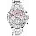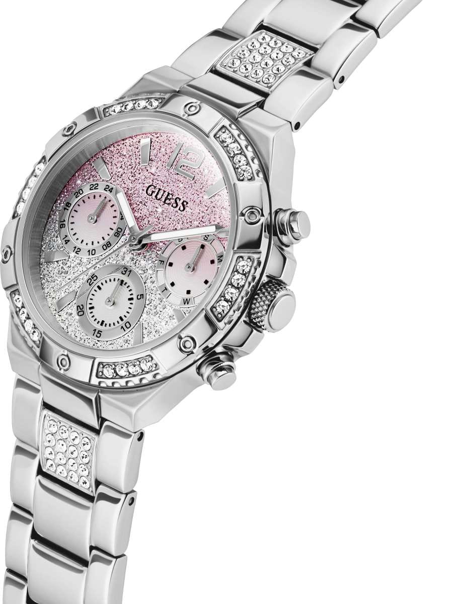 Элегантные женские наручные часы Guess Trend Harlow GW0950L1 сочетают в себе стиль и функциональность. Эти часы оснащены точным кварцевым механизмом, что гарантирует надежность и долговечность. Корпус часов выполнен из прочной нержавеющей стали диаметром 38 мм. БезельБезельВнешний ободок, закрепляющий стекло. В спортивных часах так называется поворотное кольцо с делениями на циферблате, выполняет роль таймера – замеряет отрезки времени на шкале. Неподвижный безель – элемент декора. Однонаправленно вращающийся безель на дайверских часах позволяет фиксировать моменты погружения и выныривания на поверхность. и браслет украшены кристаллами, придающими им роскошный вид. Изысканный циферблат добавляет изделию утонченности и особого шарма. Часы оснащены стальным браслетом с раскладной застежкойРаскладная застёжкаТакой тип застёжки используется только на браслетах из металла. Она никогда не раскрывается полностью, происходит разделение на 2 и более частей. Раскладывающая застёжка снизит вероятность потери часов к минимуму., который обеспечивает комфортное прилегание к запястью и надежную фиксацию. Люминесцентное покрытиеЛюминесцентное покрытиеПозволяет считывать показания времени в темноте. Производители наносят на стрелки, часовые индексы, безель или поверхность циферблата светонакопительный состав, дающий холодное свечение. на стрелках обеспечивает отличную видимость в темноте. Минеральное стеклоМинеральное стеклоМинеральное стекло представляет собой искусственно выращенный минерал кварца. Такое стекло отличается особой устойчивостью к повреждениям и царапинам. Уступает по некоторым качествам сапфировому стеклу. защищает циферблат от царапин и повреждений, сохраняя его безупречный вид. Водозащита 50WR гарантирует защиту от случайных брызг и дождя, что делает эти часы практичным аксессуаром для повседневной жизни.