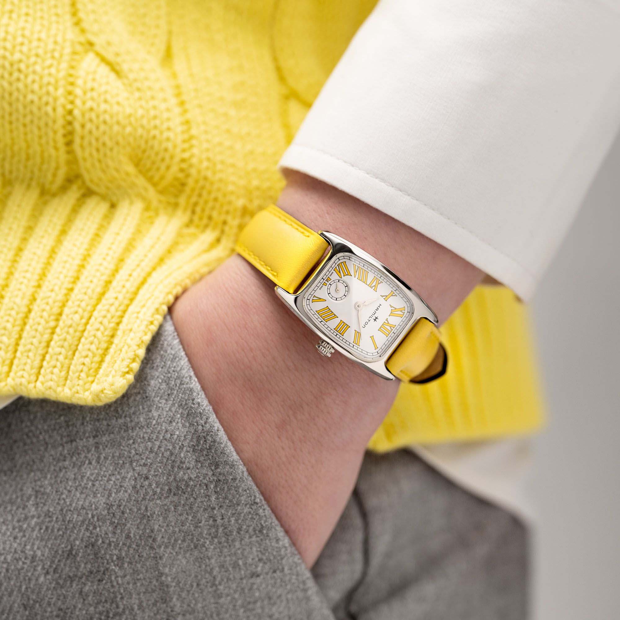 Женские швейцарские часы Hamilton American Classic Boulton Small Second Quartz H13321812, кварцевый механизм с высокой точностью. Сапфировое стеклоСапфировое стеклоПрочный и надёжный материал из кристалла сапфира синтетического происхождения, характеризующийся особой твёрдостью и устойчивостью к царапинам и повреждениям. устойчивое к появлению царапин, обладающее высокой прозрачностью. Класс водозащиты: 50 метров, позволит защитить корпус от случайных брызг или капель дождя. Корпус часов изготовлен из нержавеющей стали. Кожаный ремешок.