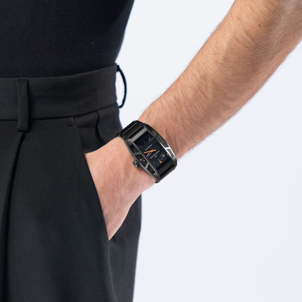 Hamilton American Classic Boulton Death Stranding 2 Limited Edition H13605130 — коллекционная модель, выпущенная ограниченным тиражом в 2000 экземпляров и вдохновлённая атмосферой игры Death Stranding 2. Корпус выполнен из титана с матовым PVD-покрытиемPVDУльтратонкое покрытие наносится в технике вакуумного напыления, сочетает в себе нитрид титана особой прочности со слоем золота или оксида хрома. Несёт в себе декоративную или защитную функцию. чёрного цвета и имеет нестандартную форму (36 × 48 мм), подчёркивающую футуристический дизайн. Прозрачная задняя крышка демонстрирует механизм и украшена логотипом игры и индивидуальным номером экземпляра. Циферблат защищён многофасеточным сапфировым стекломСапфировое стеклоПрочный и надёжный материал из кристалла сапфира синтетического происхождения, характеризующийся особой твёрдостью и устойчивостью к царапинам и повреждениям. с антибликовым покрытиемАнтибликовое покрытиеСлой оксида металла в 0,13-0,3 микрон, благодаря которому стекло часов не бликует и не отражает свет. Антибликовое покрытие уменьшает отражение света в 10 раз, обеспечивая отличную читаемость показателей циферблата.. Чёрный циферблат выполнен в минималистичном стиле с яркой оранжевой секундной стрелкой. Механизм — автоматический калибр H-10 с увеличенным запасом хода до 80 часов. Пружина баланса выполнена из сплава Nivachron™Nivachron™Специально разработанный инновационный сплав Nivachron™ повышает устойчивость часов к воздействию магнитных полей., устойчивого к магнитным полям. Часы комплектуются интегрированным титановым браслетом с застёжкой 'бабочка'Застёжка "бабочка"Такой вид застёжки дополняется предохранителями, помогающими избежать случайного раскрытия браслета. Обладают изящным исполнением. , которая обеспечивает удобную посадку и надёжную фиксацию. Водонепроницаемость до 50 метров делает модель пригодной для повседневного использования. Hamilton Boulton DS2 — уникальное слияние часового мастерства и геймдизайна, созданное для тех, кто ценит стиль, редкость и символику.