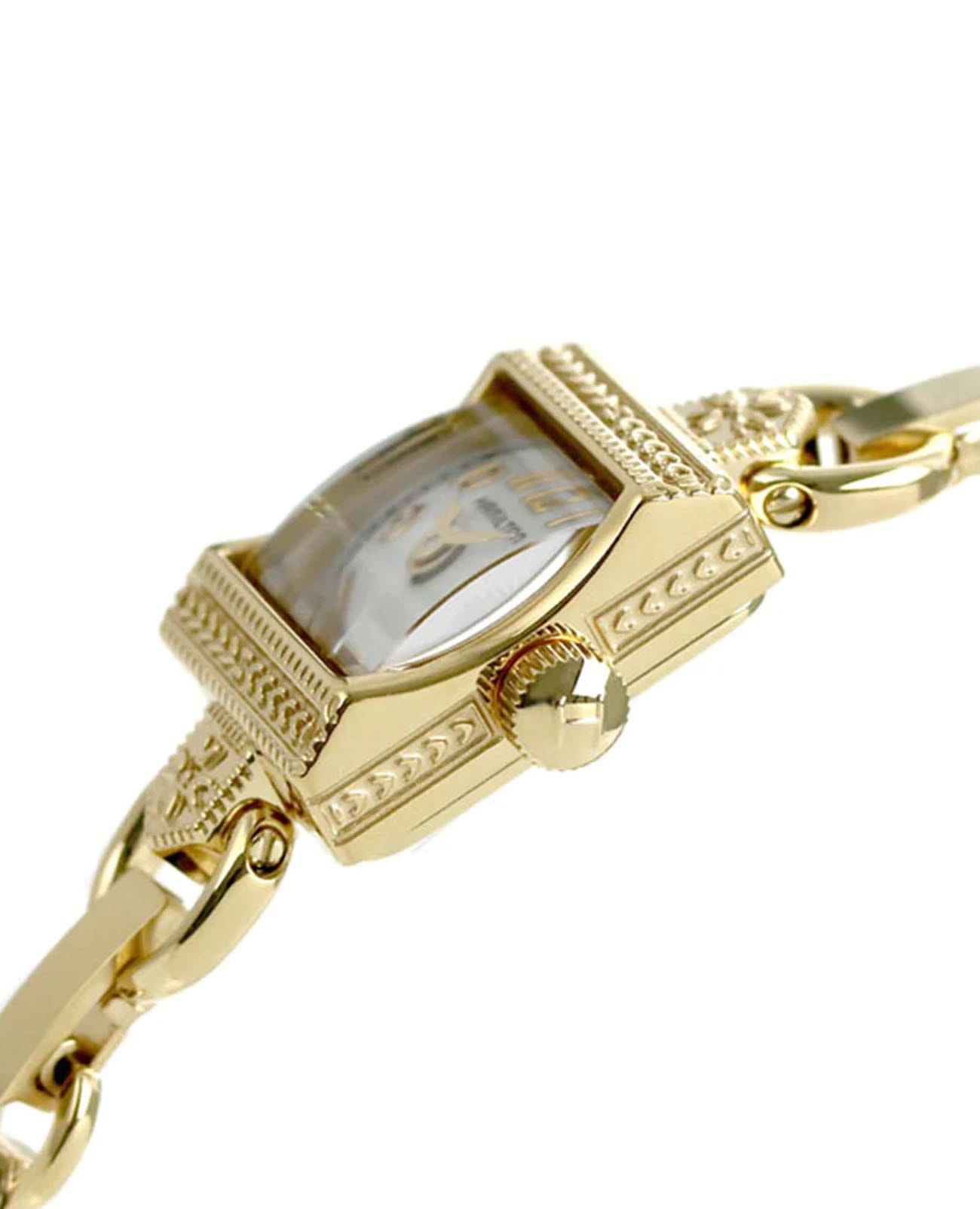 Женские наручные часы Hamilton American Classics Lady H31241113. Корпус и браслет часов изготовлены из нержавеющей стали с PVD-покрытиемPVDУльтратонкое покрытие наносится в технике вакуумного напыления, сочетает в себе нитрид титана особой прочности со слоем золота или оксида хрома. Несёт в себе декоративную или защитную функцию. золотого цвета. Сапфировое стеклоСапфировое стеклоПрочный и надёжный материал из кристалла сапфира синтетического происхождения, характеризующийся особой твёрдостью и устойчивостью к царапинам и повреждениям. с антибликовым покрытием. Стальной браслет на ювелирной застежке. Уровень влагозащиты: 50 метров, позволит защитить корпус от случайных брызг или капель дождя.
