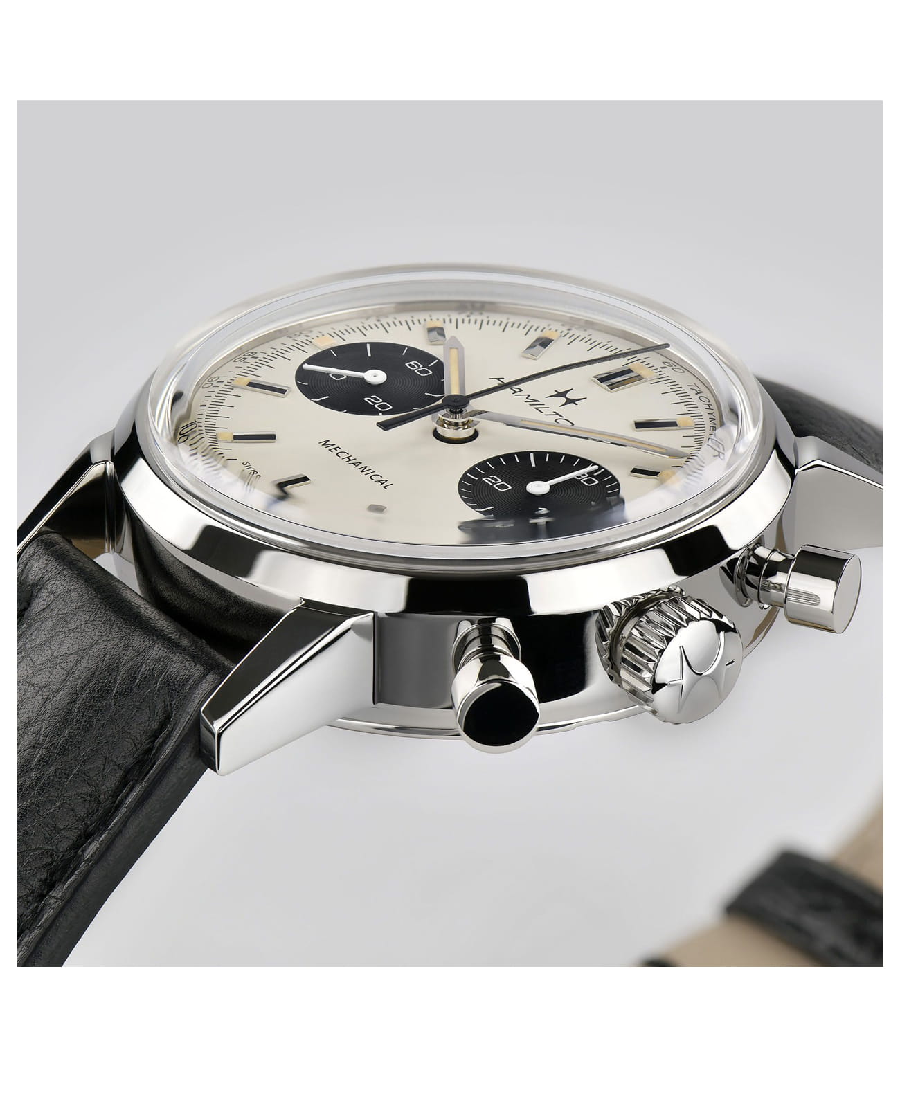 Почувствуйте дыхание часового искусства при каждом заводе Hamilton American Classic Intra-Matic Chronograph H H38429710. Модель, оснащенная механизмом хронографа с ручным заводом H-51, воплощает собой часы с душой. Выпуклое сапфировое стеклоСапфировое стеклоПрочный и надёжный материал из кристалла сапфира синтетического происхождения, характеризующийся особой твёрдостью и устойчивостью к царапинам и повреждениям. с двусторонним антибликовым покрытием защищает фирменный циферблат окраски «панда», который придает механической версии винтажного изделия особую аутентичность. Представлены в фильме «Черная пантера: Ваканда навсегда» (2022) на Мартине Фримане в роли Эверетта К.Росса.