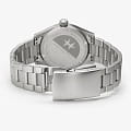 Hamilton Khaki Field Quartz H69301160 — компактные и универсальные часы в классическом военном стиле, с акцентом на надёжность и практичность. Корпус диаметром 38 мм выполнен из нержавеющей стали с сатинированной поверхностью. Он лёгкий, удобный и идеально подходит для запястий любого размера. Циферблат защищён сапфировым стекломСапфировое стеклоПрочный и надёжный материал из кристалла сапфира синтетического происхождения, характеризующийся особой твёрдостью и устойчивостью к царапинам и повреждениям. с антибликовым покрытиемАнтибликовое покрытиеСлой оксида металла в 0,13-0,3 микрон, благодаря которому стекло часов не бликует и не отражает свет. Антибликовое покрытие уменьшает отражение света в 10 раз, обеспечивая отличную читаемость показателей циферблата., устойчивым к царапинам и бликам. Циферблат оформлен в классическом армейском стиле: крупные арабские цифры, 24-часовая шкала по внутреннему кругу, стрелки и метки с люминесцентным покрытиемЛюминесцентное покрытиеПозволяет считывать показания времени в темноте. Производители наносят на стрелки, часовые индексы, безель или поверхность циферблата светонакопительный состав, дающий холодное свечение. для удобного считывания в темноте. Внутри установлен швейцарский кварцевый калибр ETA F05.105mh2 с функцией EOL-индикацииEOLПредставляет собой систему, уведомляющую владельца часов о необходимости замены элемента питания. За 2 недели до полного разряда батарейки секундная стрелка перестаёт ходить чётко и начинает перепрыгивать на 3-4 деления. — предупреждением о скором разряде батареи. Модель укомплектована браслетом из нержавеющей стали с раскладной застёжкойРаскладная застёжкаТакой тип застёжки используется только на браслетах из металла. Она никогда не раскрывается полностью, происходит разделение на 2 и более частей. Раскладывающая застёжка снизит вероятность потери часов к минимуму., обеспечивающей надёжную посадку. Водонепроницаемость 50 метров делает часы устойчивыми к брызгам и дождю, идеально подходящими для повседневного ношения. Khaki Field Quartz — надёжный выбор для тех, кто ценит простоту, точность и долговечность.