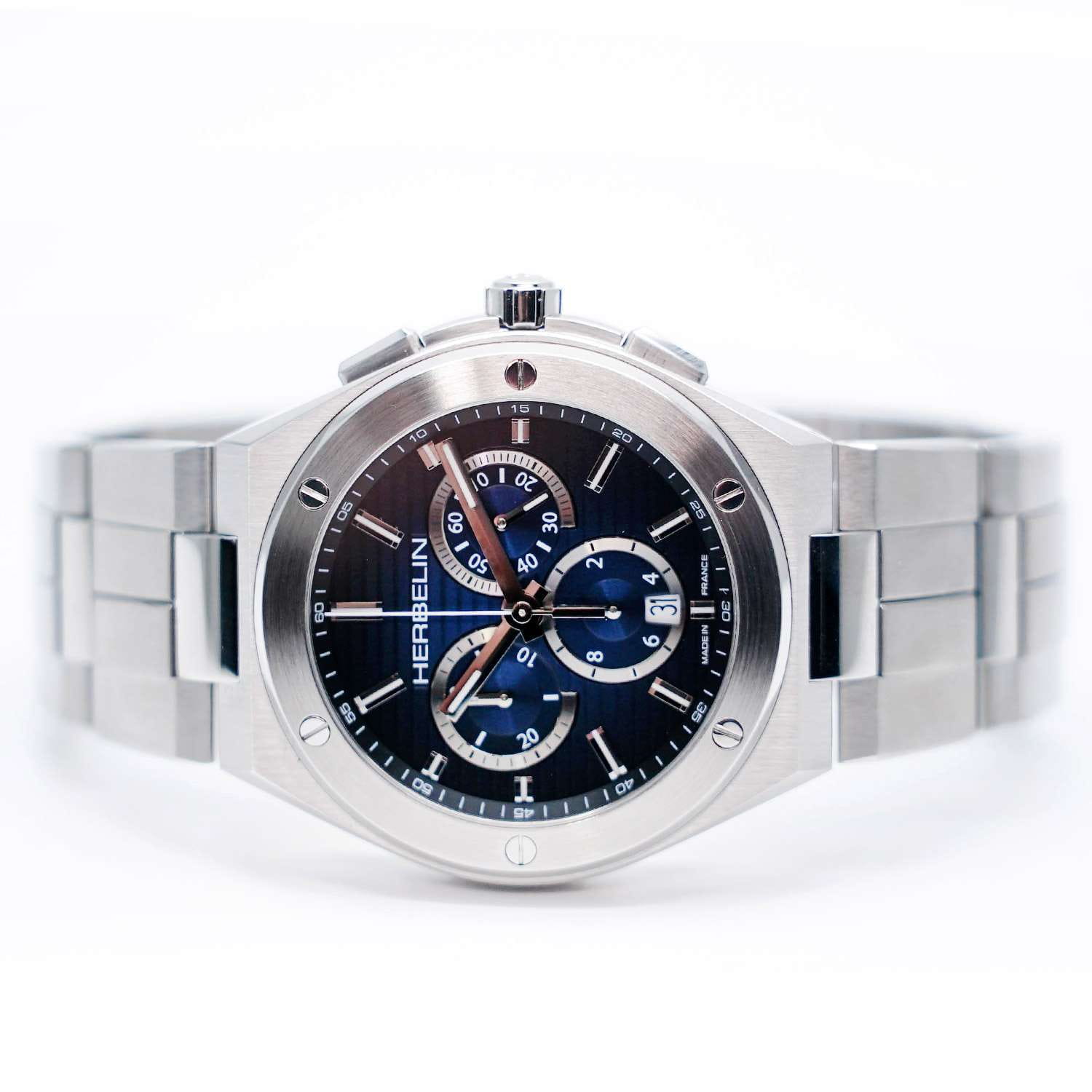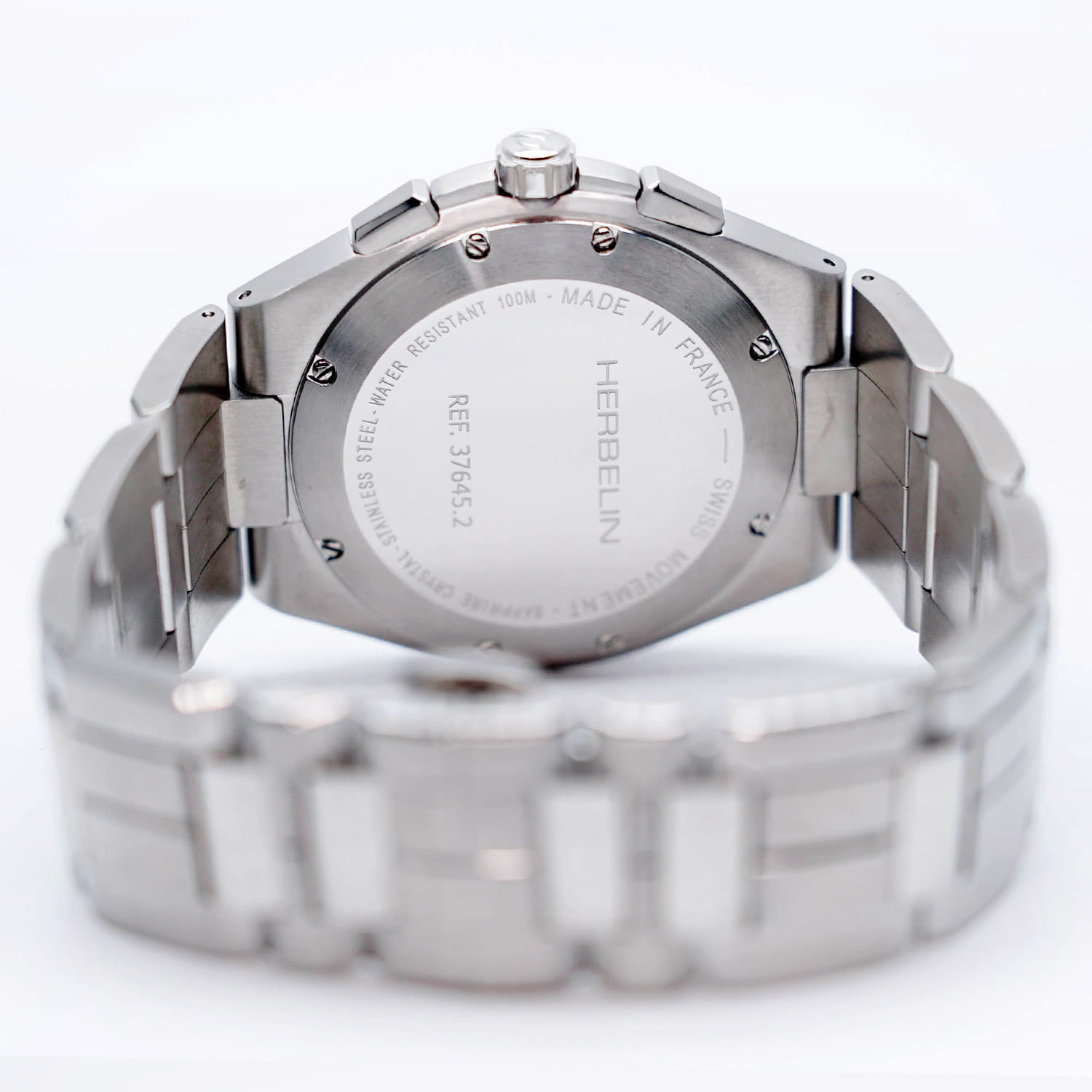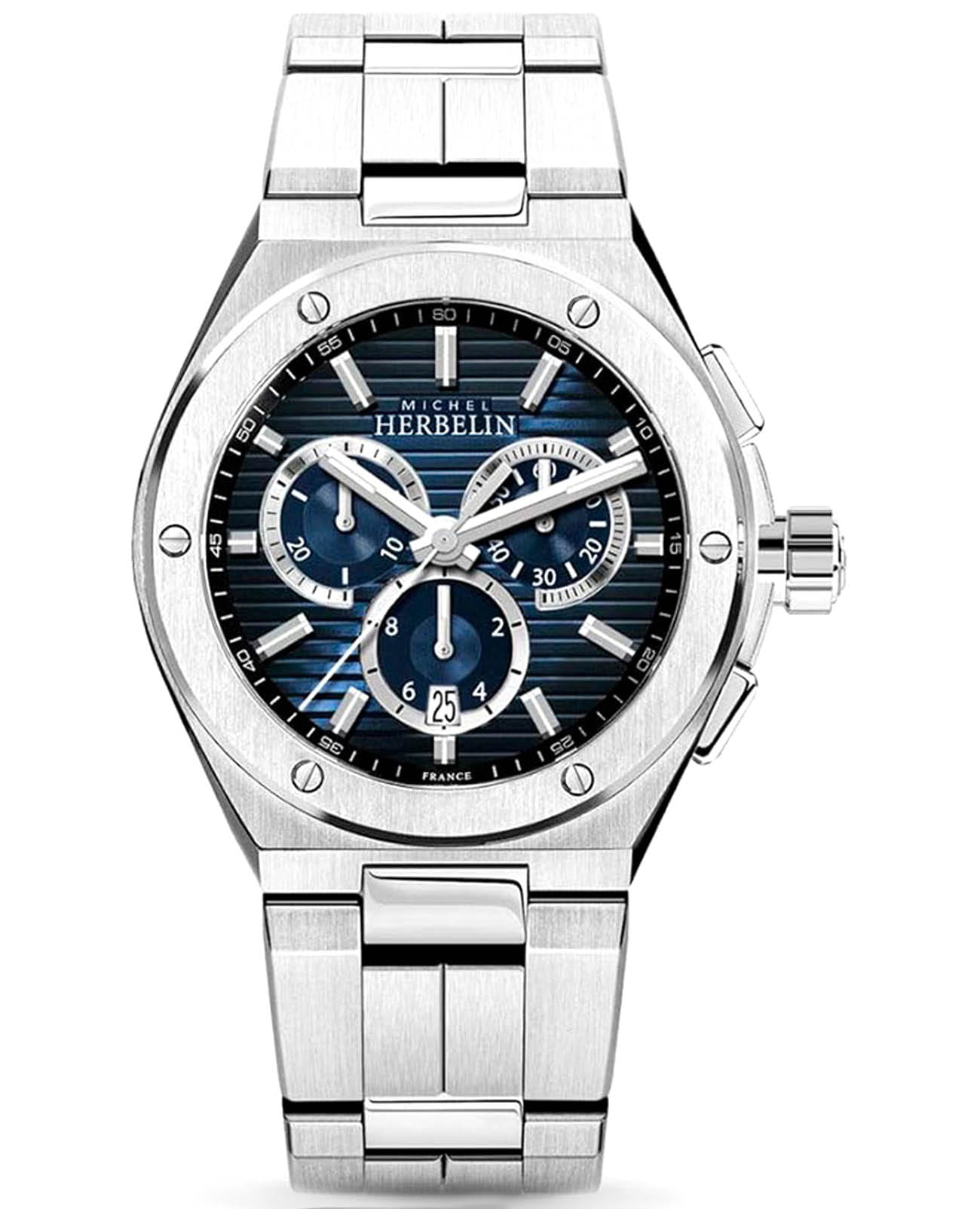 Мужские кварцевые наручные часы-хронографХронографФункция позволяет измерять отрезки времени с особой точностью: часы, минуты, секунды. Верным признаком хронографа является наличие на циферблате 3 дополнительных окошек-счётчиков. Herbelin Cap Camarat 37645B15 – отражающий идеальное сочетание современного дизайна, надёжности и функциональности. Элегантный облик станет превосходным завершением образа, наделив его индивидуальным характером. Корпус из нержавеющей стали серебристого цвета, диаметром 42 мм, идеально сбалансирован и элегантен. Сапфировое стеклоСапфировое стеклоПрочный и надёжный материал из кристалла сапфира синтетического происхождения, характеризующийся особой твёрдостью и устойчивостью к царапинам и повреждениям. защищает циферблат от царапин и устойчивое к механическим повреждениям. БезельБезельВнешний ободок, закрепляющий стекло. В спортивных часах так называется поворотное кольцо с делениями на циферблате, выполняет роль таймера – замеряет отрезки времени на шкале. Неподвижный безель – элемент декора. Однонаправленно вращающийся безель на дайверских часах позволяет фиксировать моменты погружения и выныривания на поверхность. украшен винтами, заводная головка с защитой. Окошко даты находится в положении 6 часов. Стрелки и метки с люминесцентным покрытиемЛюминесцентное покрытиеПозволяет считывать показания времени в темноте. Производители наносят на стрелки, часовые индексы, безель или поверхность циферблата светонакопительный состав, дающий холодное свечение.. Стальной браслет на застёжке-бабочке с кнопкамиЗастёжка "бабочка"Такой вид застёжки дополняется предохранителями, помогающими избежать случайного раскрытия браслета. Обладают изящным исполнением. обеспечивает комфортное ношение. Водозащита 100 метров позволит плавать, нырять и заниматься другими водными видами спорта. Эта модель – отличный выбор для тех, кто ищет сочетание стиля, качества и функциональности. Часы станут не только полезным аксессуаром, но и выразительным элементом вашего имиджа.