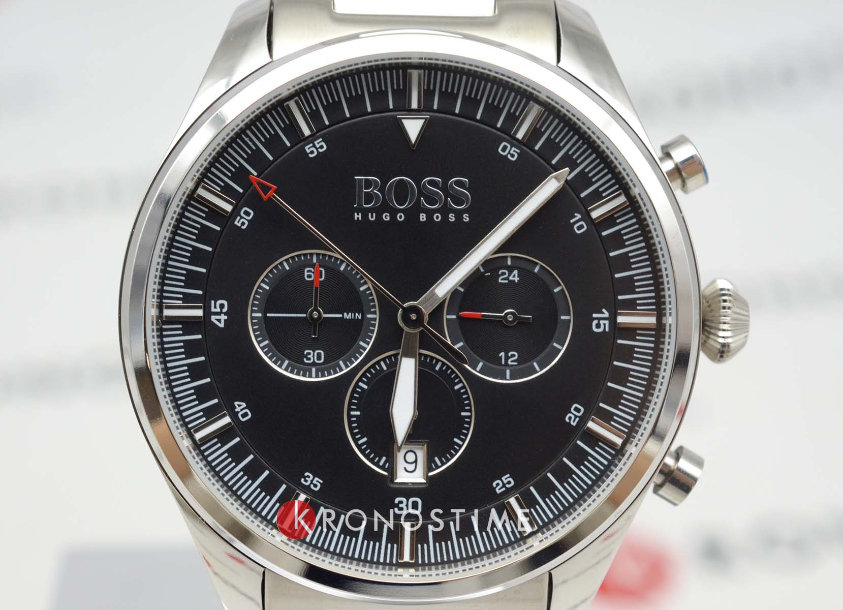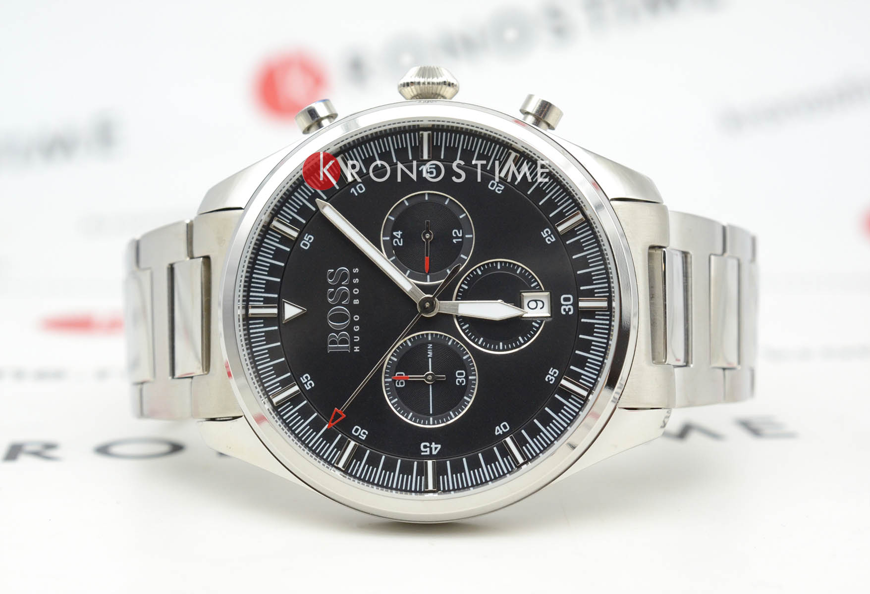 Мужские часы Hugo Boss Pionner HB1513712 представлены в круглом 44-мм корпусе из нержавеющей стали 316L с кварцевым механизмом. Модель оснащена функциями хронографаХронографФункция позволяет измерять отрезки времени с особой точностью: часы, минуты, секунды. Верным признаком хронографа является наличие на циферблате 3 дополнительных окошек-счётчиков., секундомераСекундомерСекундоме́р — прибор, способный измерять интервалы времени с точностью до долей секунды. и индикацией даты. Черный циферблат защищен минеральным стекломМинеральное стеклоМинеральное стекло представляет собой искусственно выращенный минерал кварца. Такое стекло отличается особой устойчивостью к повреждениям и царапинам. Уступает по некоторым качествам сапфировому стеклу., а водонепроницаемость 50 метров (WR30) защищает от брызг. Браслет из нержавеющей стали 316L с раскладной застёжкойРаскладная застёжкаТакой тип застёжки используется только на браслетах из металла. Она никогда не раскрывается полностью, происходит разделение на 2 и более частей. Раскладывающая застёжка снизит вероятность потери часов к минимуму. обеспечивает удобную посадку.