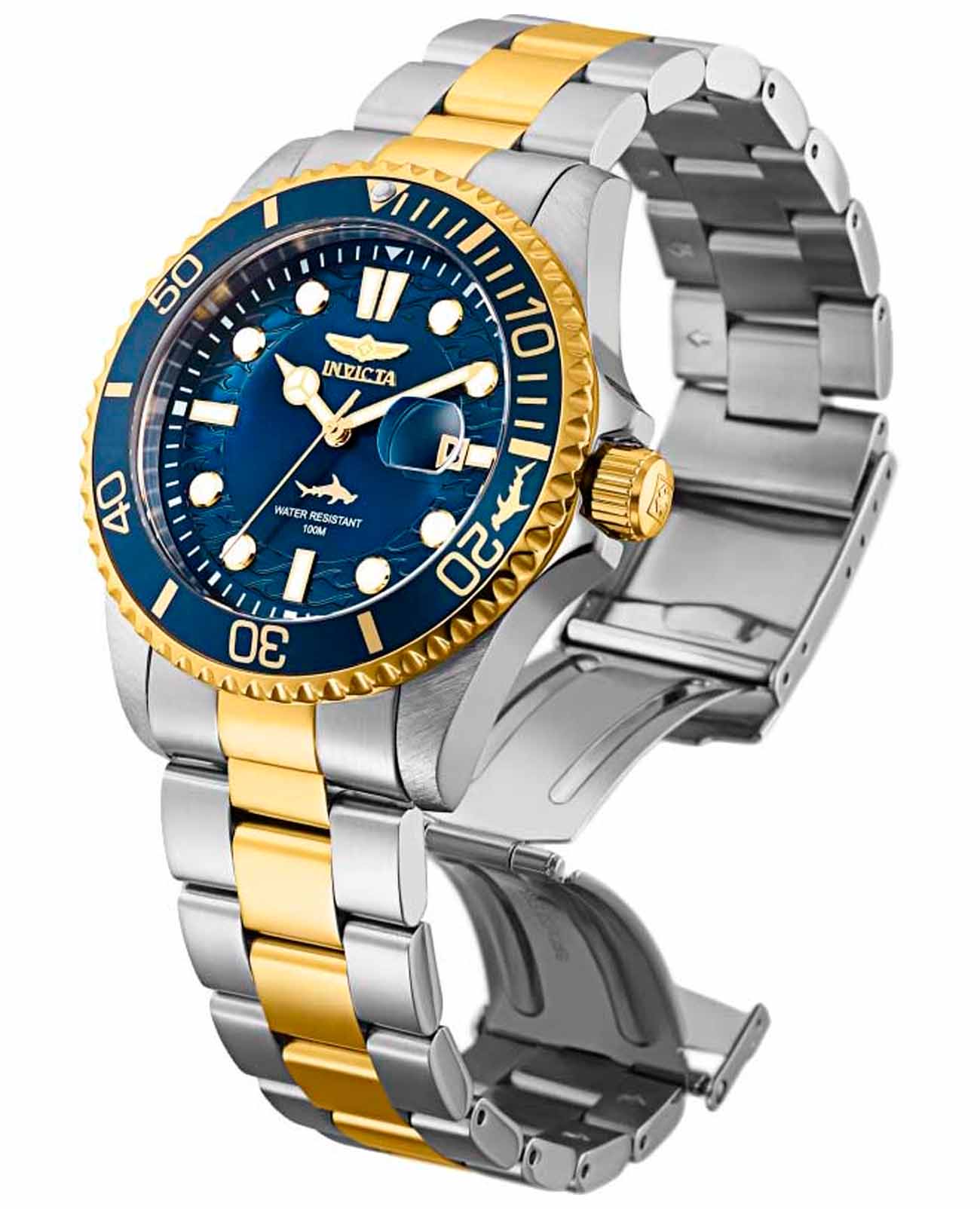Мужские наручные часы Invicta IN30021 из коллекции Pro Diver сочетают в себе классический дизайн и функциональность для активного образа жизни. БезельБезельВнешний ободок, закрепляющий стекло. В спортивных часах так называется поворотное кольцо с делениями на циферблате, выполняет роль таймера – замеряет отрезки времени на шкале. Неподвижный безель – элемент декора. Однонаправленно вращающийся безель на дайверских часах позволяет фиксировать моменты погружения и выныривания на поверхность. с IP-покрытиемIP-покрытиеМетод ионного напыления. Демонстрирует повышенную устойчивость к истиранию, окислению и химическим веществам. Под воздействием высокого давления и температуры около 1500°C молекулы металла надёжно соединяются с частицами корпуса часов., что придает ей современный вид и защищает от внешних воздействий. Браслет выполнен из нержавеющей стали с частичным IP-покрытиемIP-покрытиеМетод ионного напыления. Демонстрирует повышенную устойчивость к истиранию, окислению и химическим веществам. Под воздействием высокого давления и температуры около 1500°C молекулы металла надёжно соединяются с частицами корпуса часов., а также оснащен раскладной застежкойРаскладная застёжкаТакой тип застёжки используется только на браслетах из металла. Она никогда не раскрывается полностью, происходит разделение на 2 и более частей. Раскладывающая застёжка снизит вероятность потери часов к минимуму. с системой блокировки, обеспечивающей комфортное ношение . Синий циферблат дополнен люминесцентными стрелками и метками Tritnite, гарантирующими отличную видимость в темноте. Для защиты используется минеральное стеклоМинеральное стеклоМинеральное стекло представляет собой искусственно выращенный минерал кварца. Такое стекло отличается особой устойчивостью к повреждениям и царапинам. Уступает по некоторым качествам сапфировому стеклу., которое обеспечивает прочность и устойчивость к царапинам . Часы работают на кварцевом механизме, что гарантирует точное время без необходимости подзаводки . На циферблате присутствует окно даты с увеличительным стеклом, добавляющим удобства при использовании. Водонепроницаемость модели достигает 100WR, что позволяет использовать часы во время плавания и других водных видов спорта .