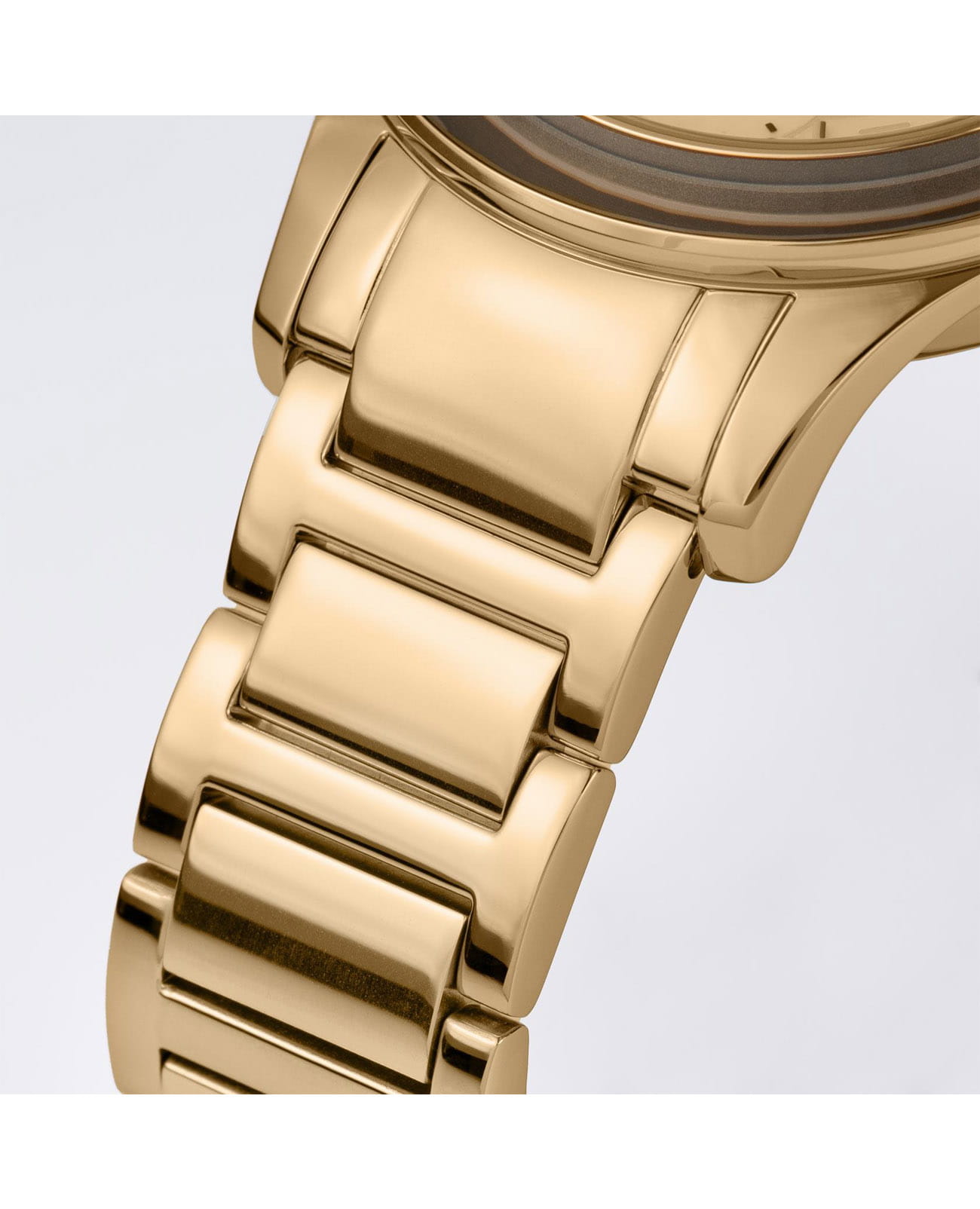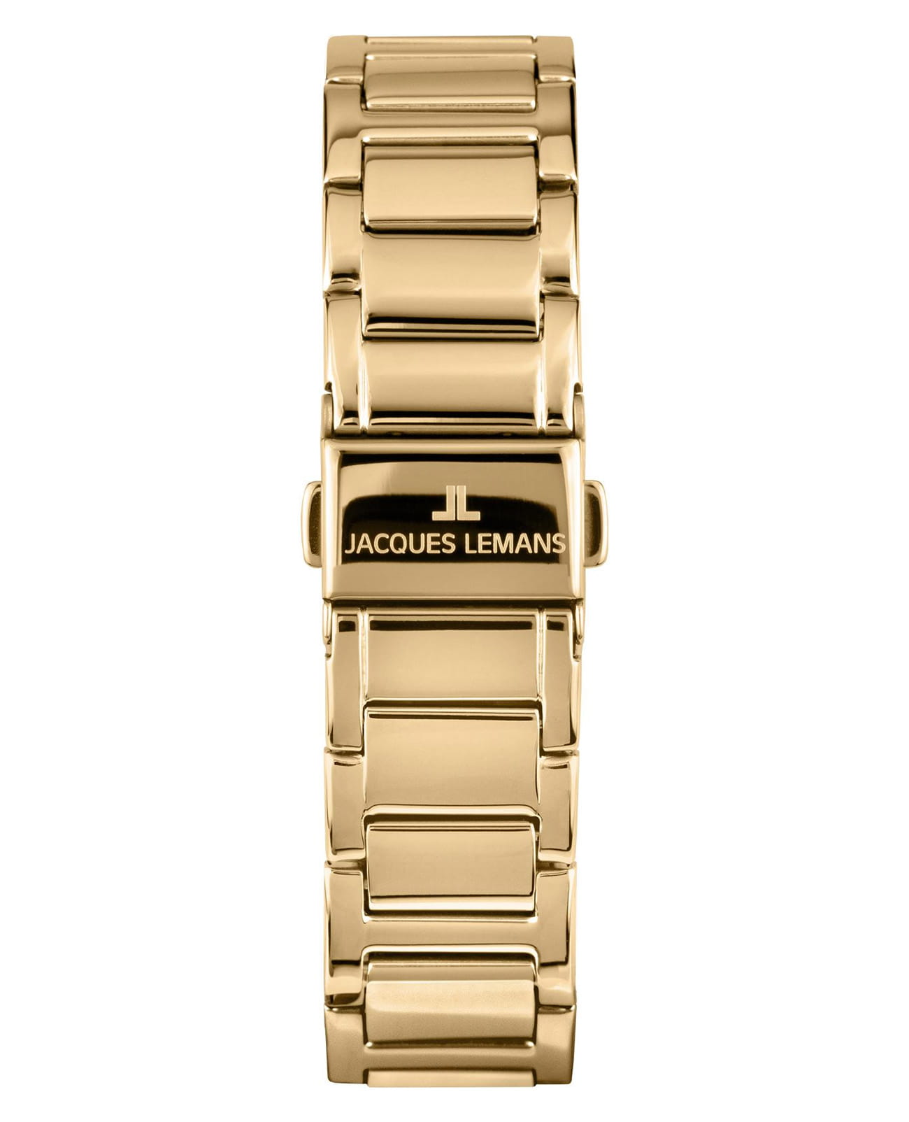 Женские часы-хронографХронографФункция позволяет измерять отрезки времени с особой точностью: часы, минуты, секунды. Верным признаком хронографа является наличие на циферблате 3 дополнительных окошек-счётчиков. c секундомеромСекундомерСекундоме́р — прибор, способный измерять интервалы времени с точностью до долей секунды. Jacques Lemans Venice 1-2151H, кварцевый механизм с высокой точностью. Минеральное стеклоМинеральное стеклоМинеральное стекло представляет собой искусственно выращенный минерал кварца. Такое стекло отличается особой устойчивостью к повреждениям и царапинам. Уступает по некоторым качествам сапфировому стеклу. устойчивое к мелким механическим повреждениям. Корпус из нержавеющей стали с PVDPVDУльтратонкое покрытие наносится в технике вакуумного напыления, сочетает в себе нитрид титана особой прочности со слоем золота или оксида хрома. Несёт в себе декоративную или защитную функцию. покрытием. Широкий безельБезельВнешний ободок, закрепляющий стекло. В спортивных часах так называется поворотное кольцо с делениями на циферблате, выполняет роль таймера – замеряет отрезки времени на шкале. Неподвижный безель – элемент декора. Однонаправленно вращающийся безель на дайверских часах позволяет фиксировать моменты погружения и выныривания на поверхность. с гранями. На циферблате расположены три дополнительных индикатора. Окошко даты находится в положении между 4 и 5 часов. Стрелки с люминесцентным покрытиемЛюминесцентное покрытиеПозволяет считывать показания времени в темноте. Производители наносят на стрелки, часовые индексы, безель или поверхность циферблата светонакопительный состав, дающий холодное свечение.. Каждая накладная риска украшена кристаллом Swarowski. Класс водозащиты: 50 метров, позволит защитить корпус от случайных брызг или капель дождя. Браслет из нержавеющей стали с частичным PVDPVDУльтратонкое покрытие наносится в технике вакуумного напыления, сочетает в себе нитрид титана особой прочности со слоем золота или оксида хрома. Несёт в себе декоративную или защитную функцию. покрытием на раскладной застёжкеРаскладная застёжкаТакой тип застёжки используется только на браслетах из металла. Она никогда не раскрывается полностью, происходит разделение на 2 и более частей. Раскладывающая застёжка снизит вероятность потери часов к минимуму..