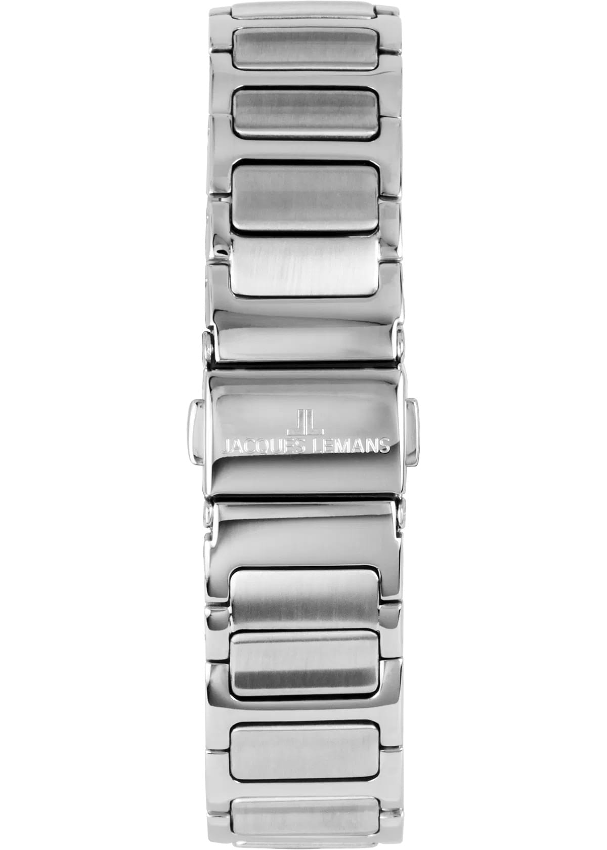 Женские наручные часы Jacques Lemans 1-2208B представляют собой стильный аксессуар, отражающий идеальное сочетание современного дизайна, надёжности и функциональности. Кварцевый механизм высокой точности. Корпус из нержавеющей стали диаметром 30 мм идеально сбалансирован и элегантен. БезельБезельВнешний ободок, закрепляющий стекло. В спортивных часах так называется поворотное кольцо с делениями на циферблате, выполняет роль таймера – замеряет отрезки времени на шкале. Неподвижный безель – элемент декора. Однонаправленно вращающийся безель на дайверских часах позволяет фиксировать моменты погружения и выныривания на поверхность. украшен кристаллами. Ударопрочное минеральное стеклоМинеральное стеклоМинеральное стекло представляет собой искусственно выращенный минерал кварца. Такое стекло отличается особой устойчивостью к повреждениям и царапинам. Уступает по некоторым качествам сапфировому стеклу. Crystex защищает циферблат от царапин. Стальной браслет на раскладной застёжкеРаскладная застёжкаТакой тип застёжки используется только на браслетах из металла. Она никогда не раскрывается полностью, происходит разделение на 2 и более частей. Раскладывающая застёжка снизит вероятность потери часов к минимуму. обеспечивает комфортное ношение. Водозащита 50 метров позволит защитить корпус от случайных брызг или капель дождя. Это аксессуар для женщины, который ценит классический стиль и минимализм.